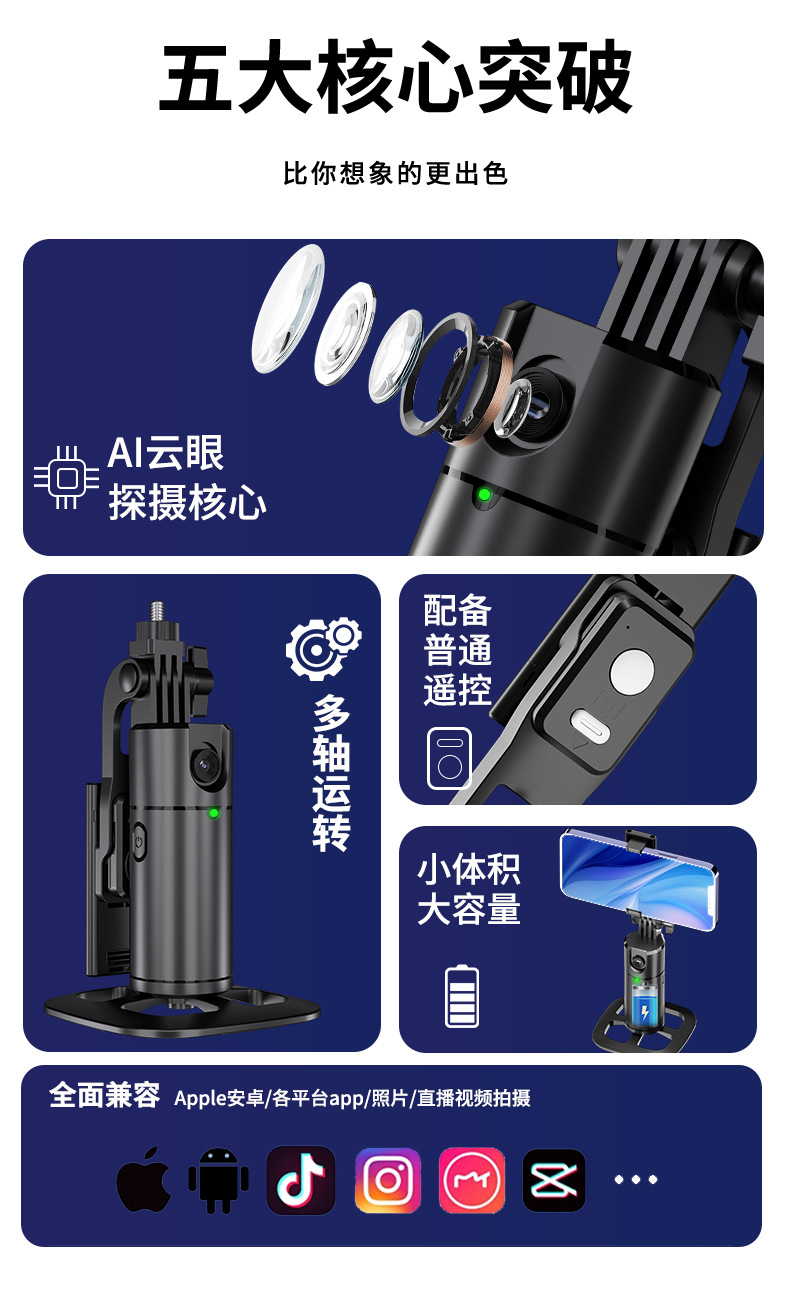 Q1 휴대 전화 후속 Yuntai 지능형 얼굴 인식 추적 라이브 지원 360 완전 자동 후속 안정제스토어 가기
