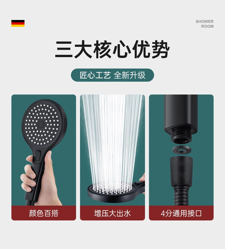 독일 가압 샤워 노즐 슈퍼 가압 욕실 가정용 샤워 헤드 세트 샤워 헤드 큰 물 수확량스토어 가기