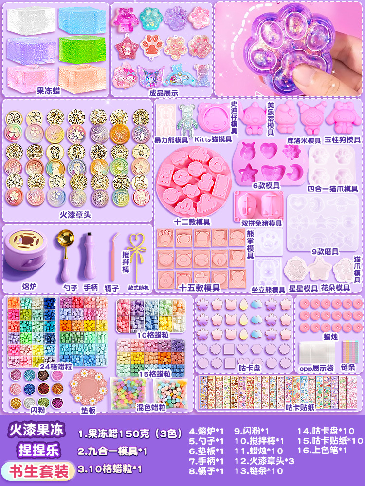 • 3단 박스 모델 [Lewan Fidget]에는 산리오 몰드 + 5색 젤리 왁스가 포함되어 있습니다.