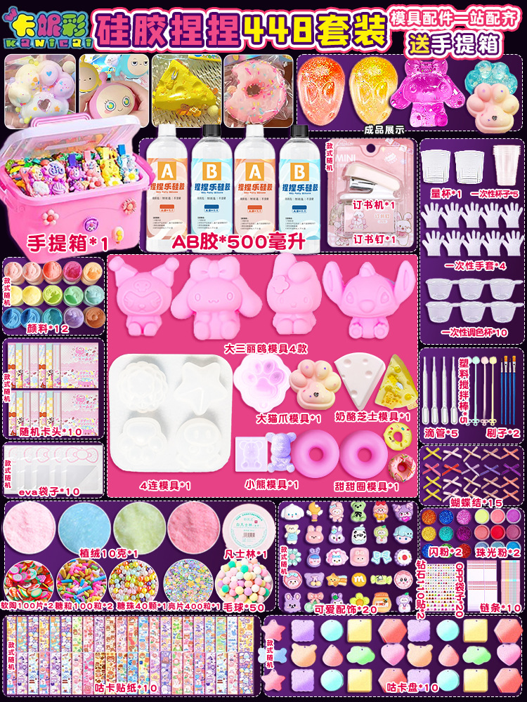 • 수납박스형 [실리콘핀치 448세트] 무료 500ml 실리콘 + 대형 산리오 몰드