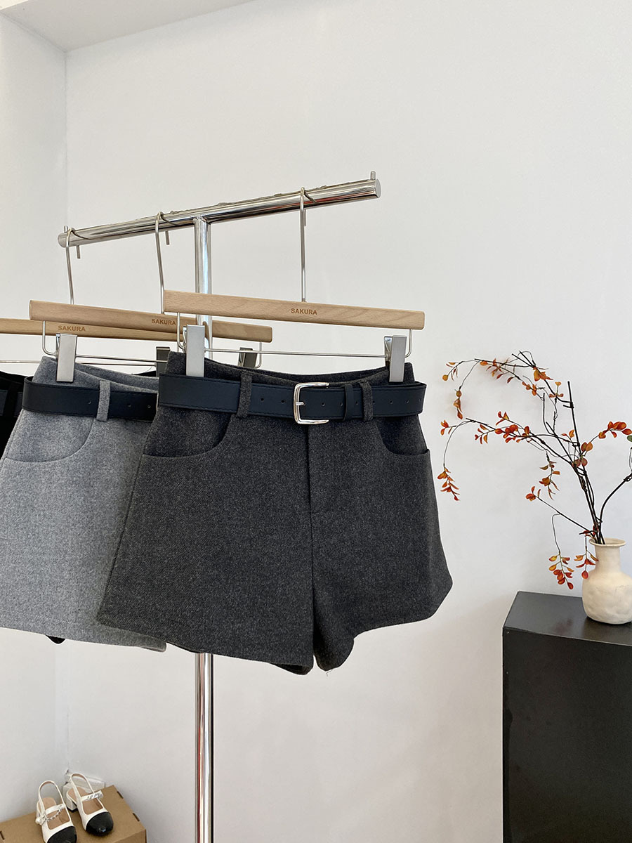 회색 모직 반바지 여자 겨울 2024 새로운 한국식 통근 통근 다목적 두꺼운 높은 허리 넓은 다리 핫 바지스토어 가기