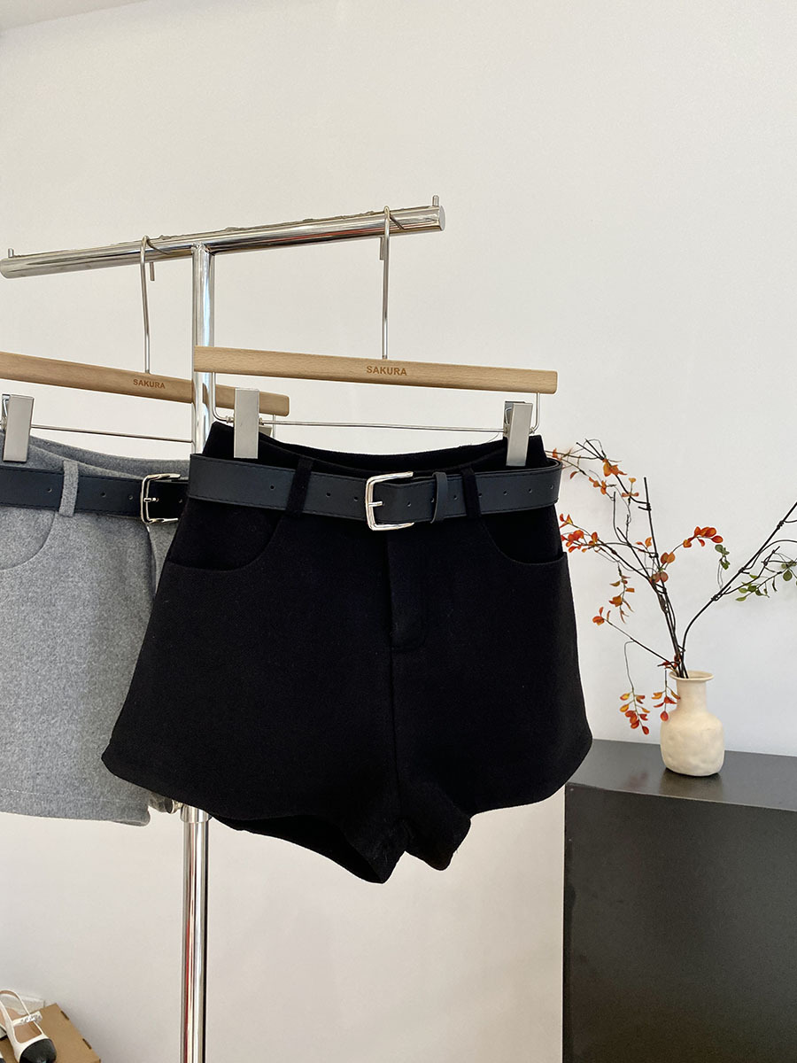 회색 모직 반바지 여자 겨울 2024 새로운 한국식 통근 통근 다목적 두꺼운 높은 허리 넓은 다리 핫 바지