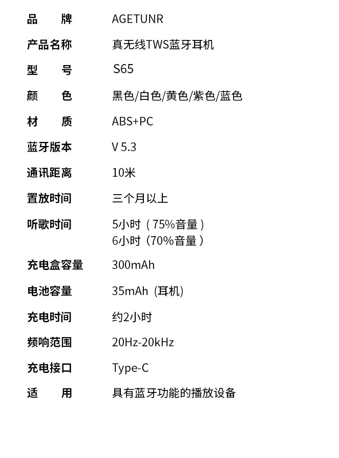 새로운 S65 무선 블루투스 헤드셋 TWS 블루투스 V5.4 음악 게임 헤드셋스토어 가기