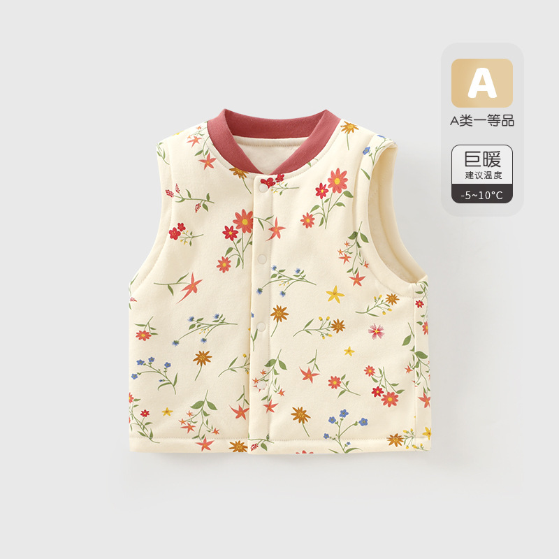 여아 조끼 가을 겨울 2025 신상 아기 누빔 조끼 따뜻한 민소매 조끼 숲풍 꽃무늬 아기 조끼 겨울스토어 가기