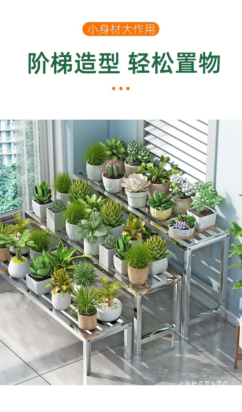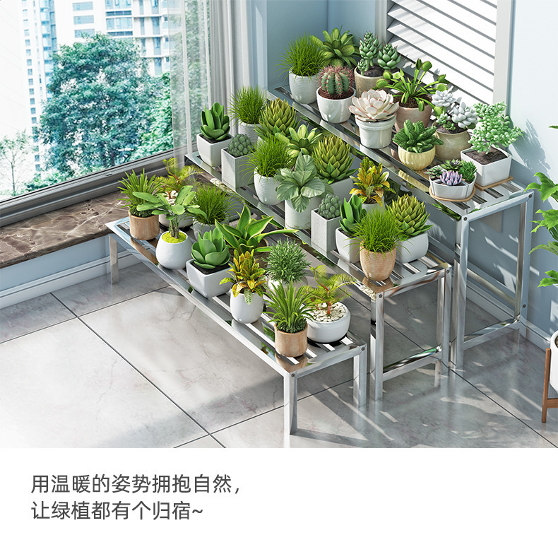 스테인레스 스틸 플라워 랙 스텝 콤비네이션 발코니 다층 랙 확장 된 야외 식물 꽃 냄비 랙