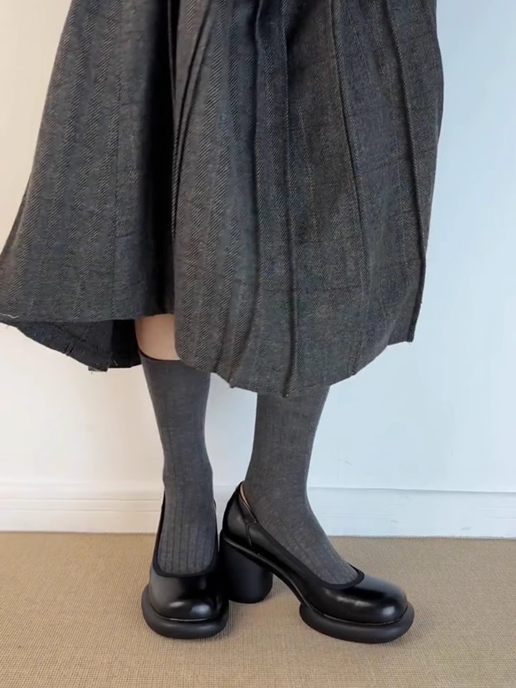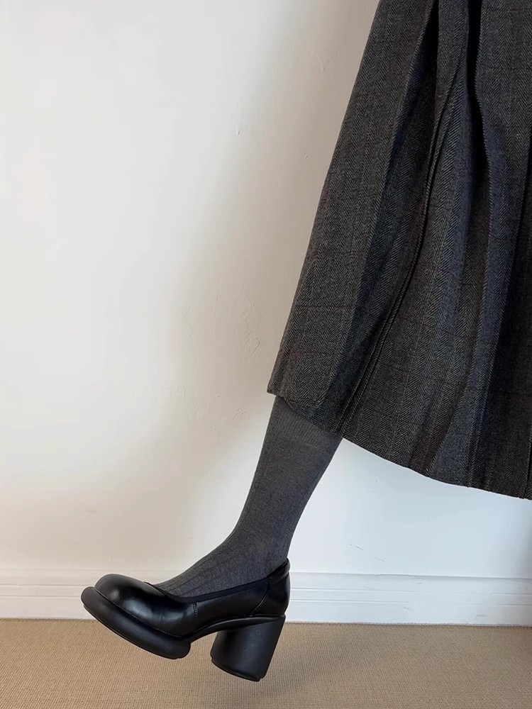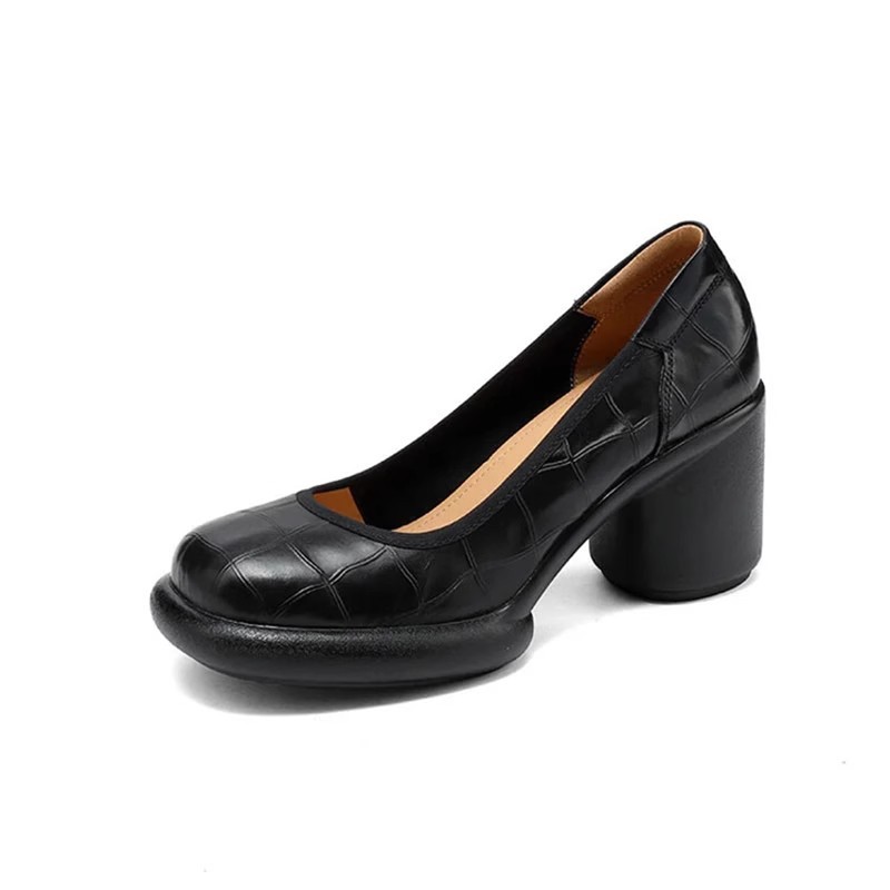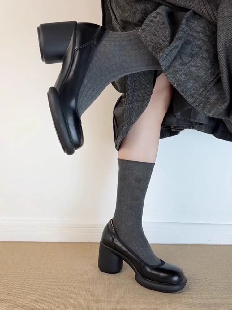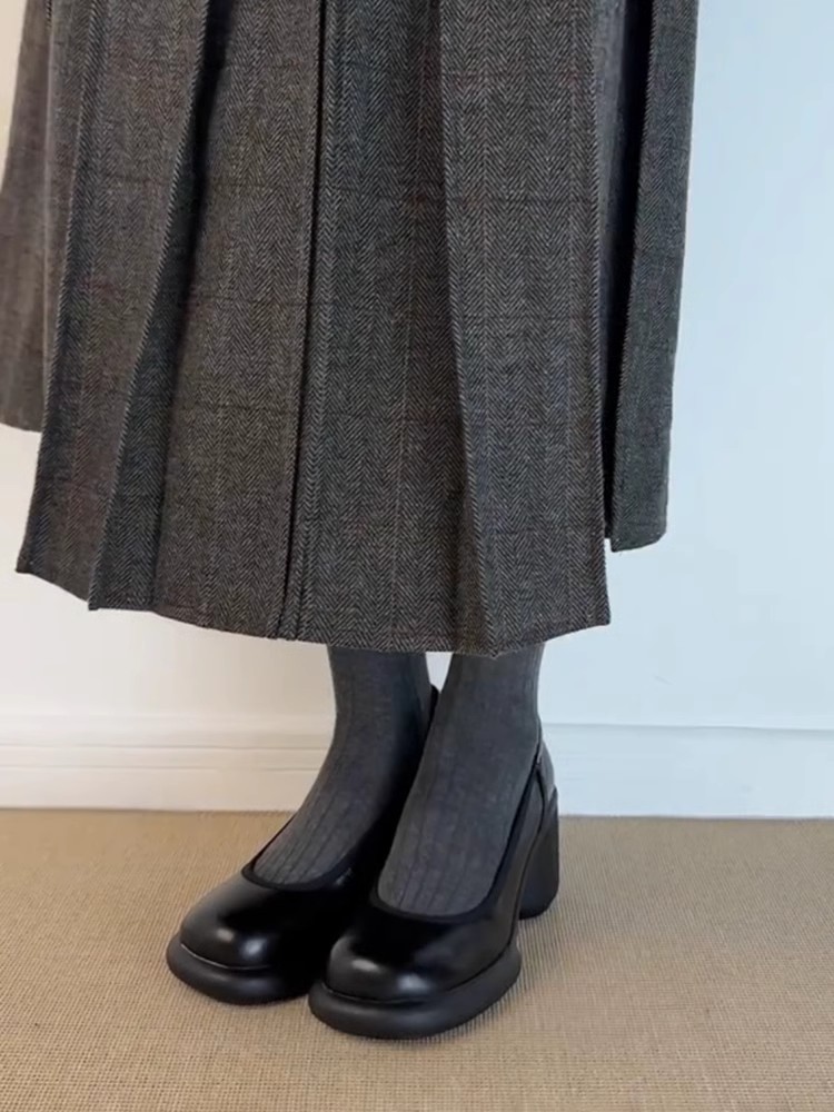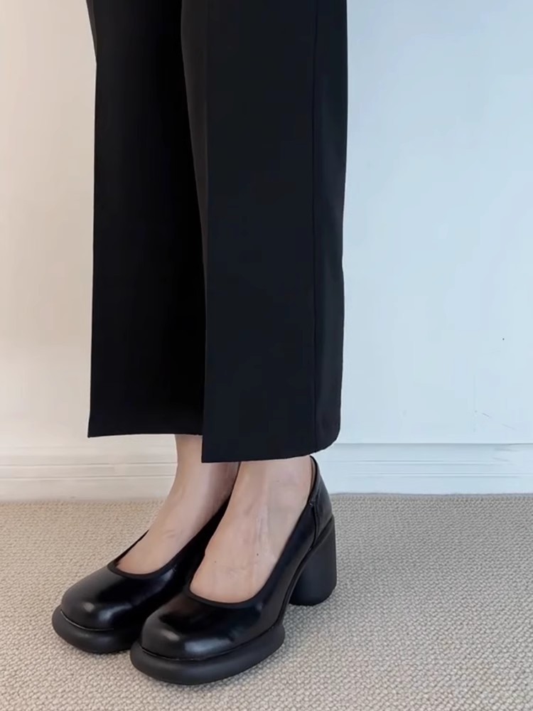 양가죽 ~ 프렌치 레트로 방수 플랫폼 두꺼운 바닥 하이힐 싱글 레이어 신발 여성의 2024 봄과 가을 새로운 블랙 얕은 입 작은 가죽 신발스토어 가기