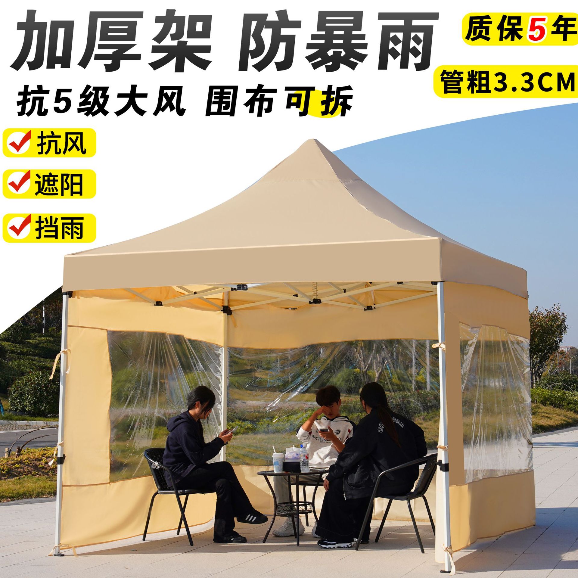 • 3X3 두꺼운 다이아몬드 프레임 카키 + 3면 창 두께 4.5cm