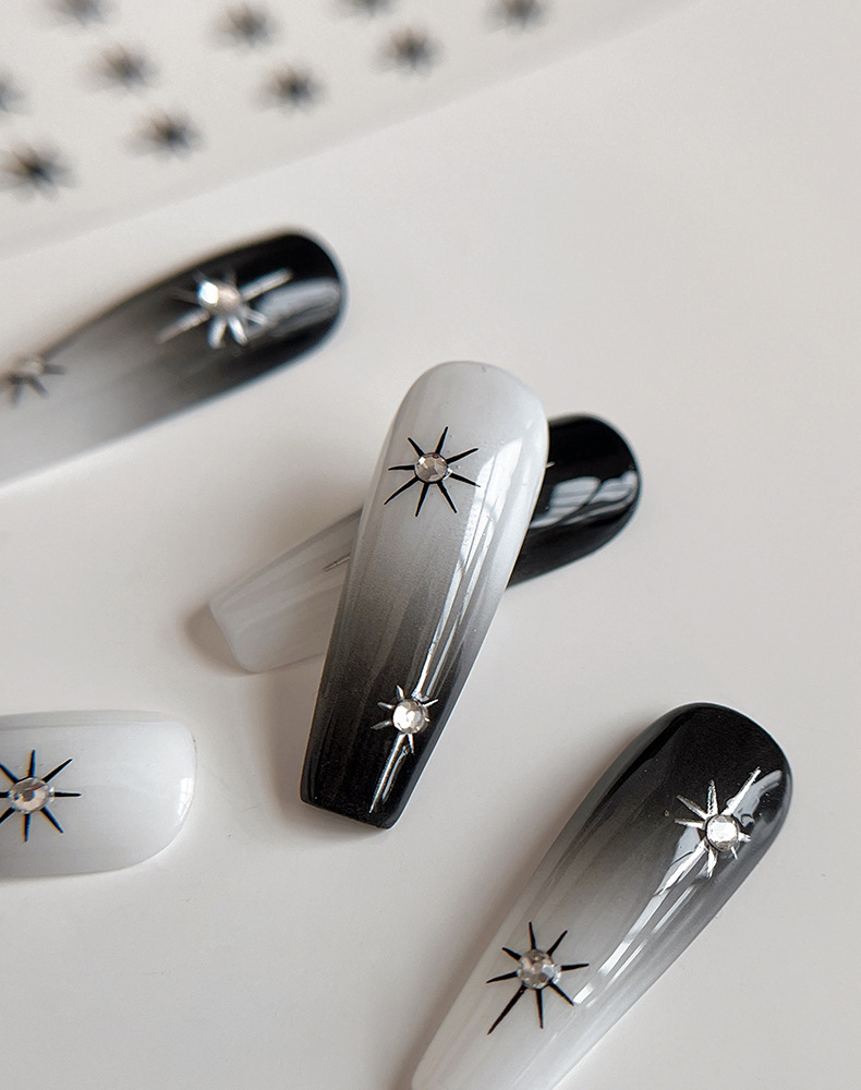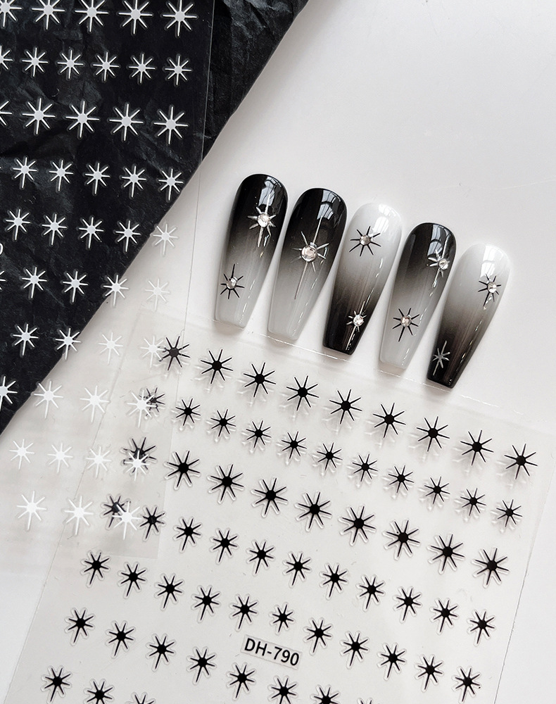 새로운 4 인 스타 네일 아트 스티커 흑백 절묘한 간단한 조커 얇은 인대 다시 접착제 네일 장식 도매