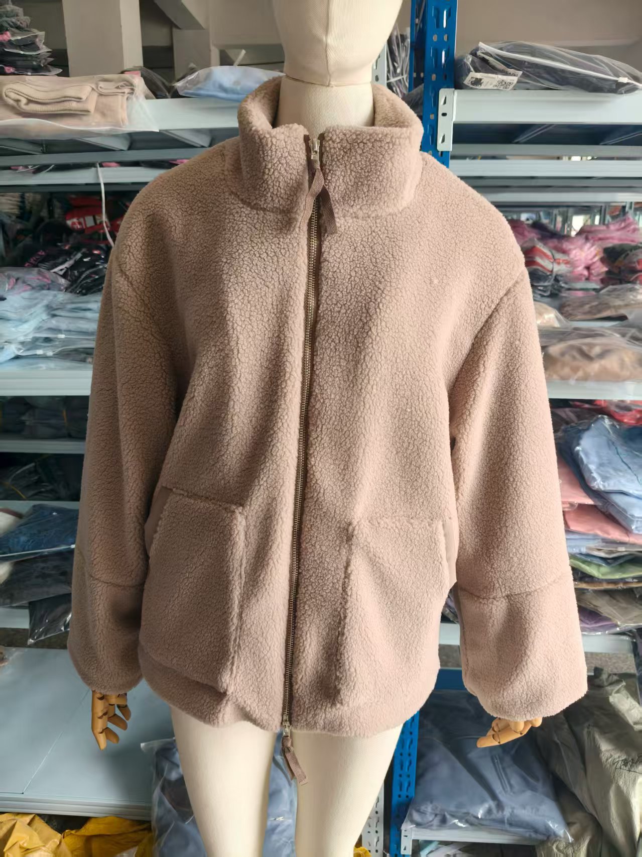 국경 2024 유럽과 미국 스타일의 가을과 겨울 새로운 여성의 단색 게으른 스타일 양모 터틀넥 플러시 코트스토어 가기