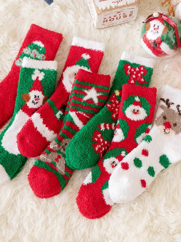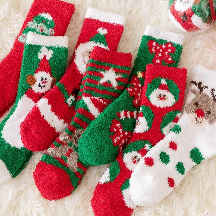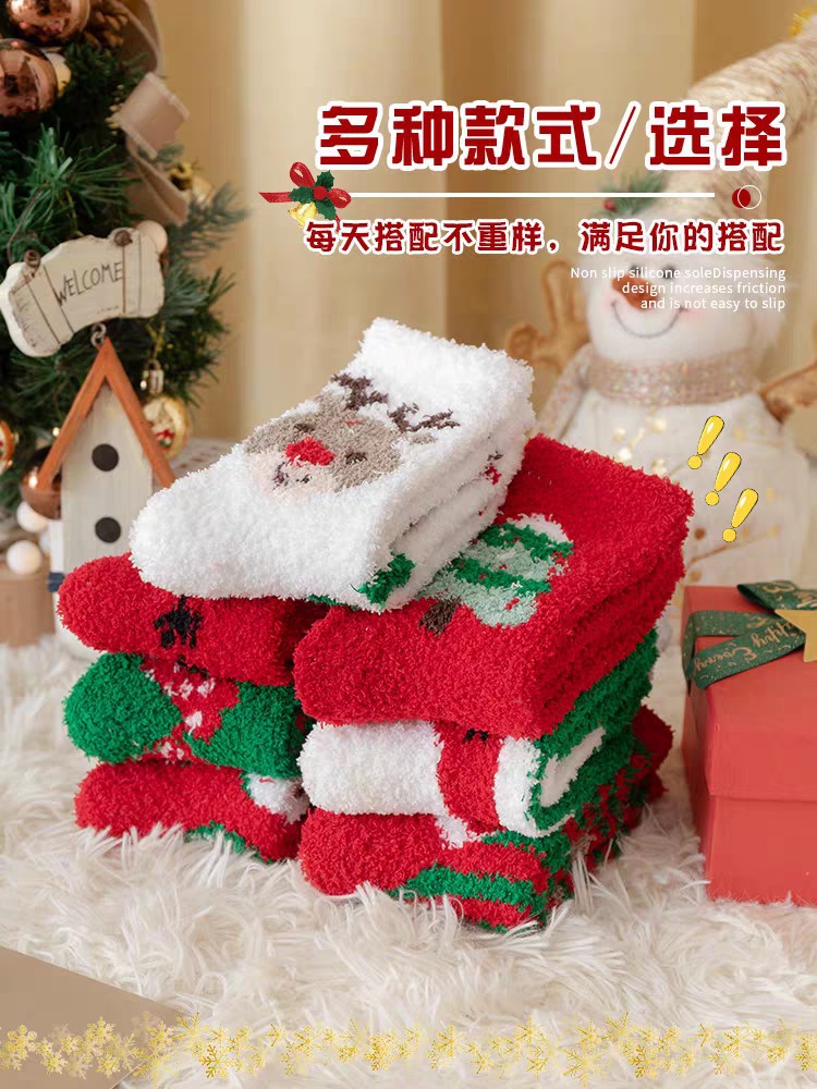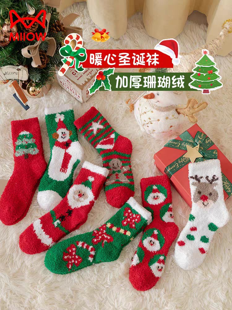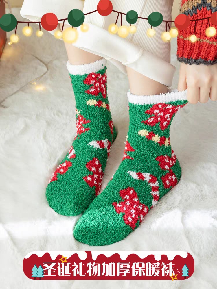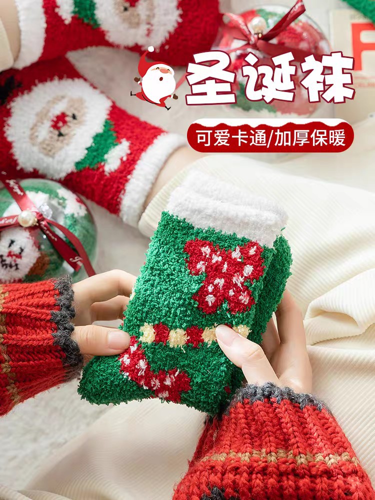 크리스마스 양말 가을과 겨울 만화 육아 크리스마스 양말 산호 양털 양말 기모 따뜻한 미드 튜브 바닥 양말 국경스토어 가기
