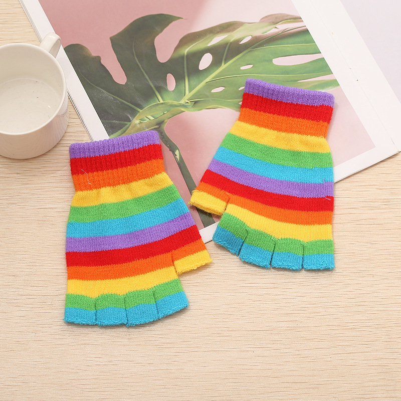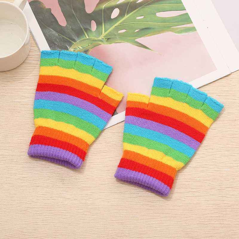 새로운 크리스마스 컬러 스트라이프 반 손가락 장갑 가을과 겨울 학생 소녀 용 게임 니트 따뜻한 장갑 쓰기
