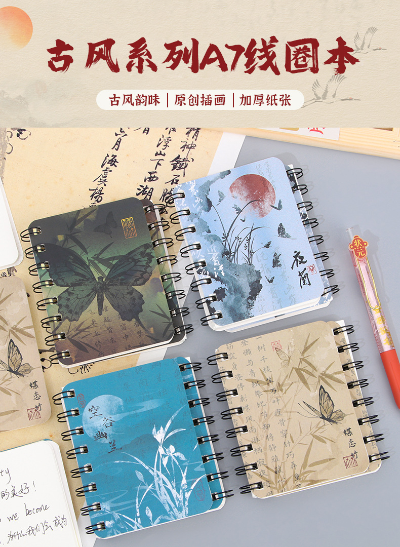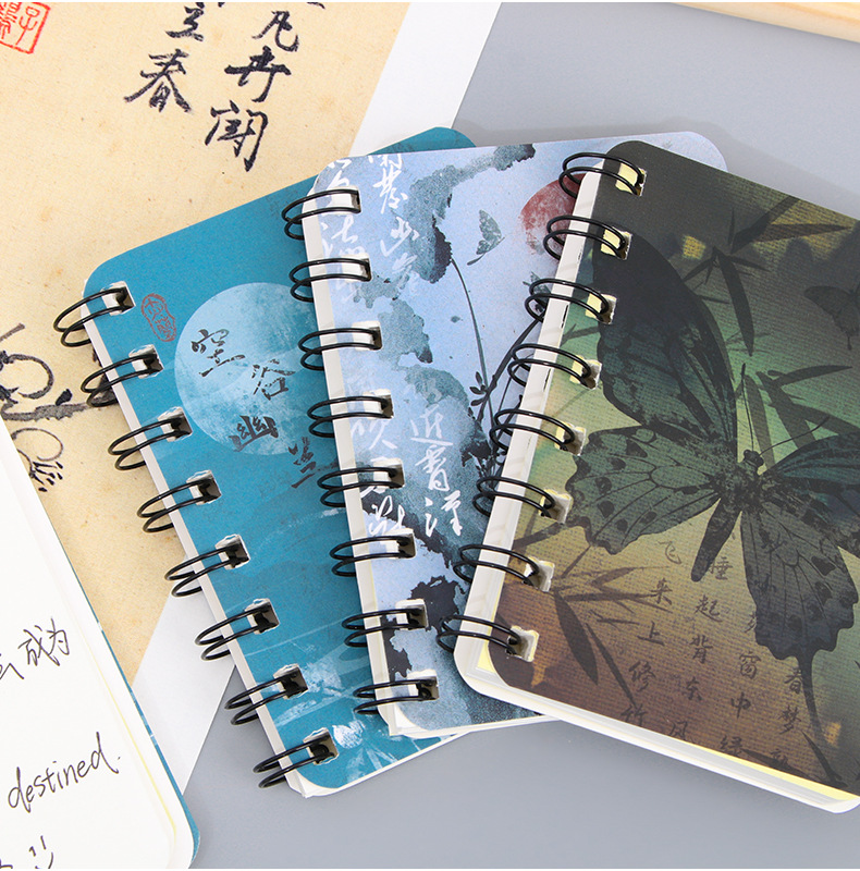 창조적 인 Ins 골동품 롤오버 코일 북 학생 귀여운 미니 휴대용 포켓북 A7 빈 노트북