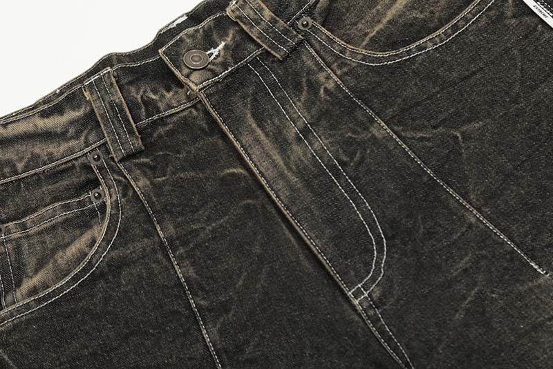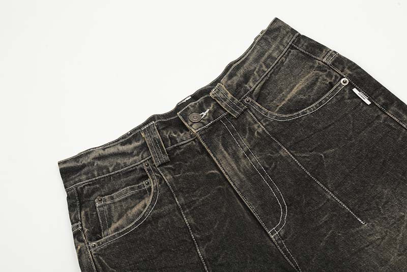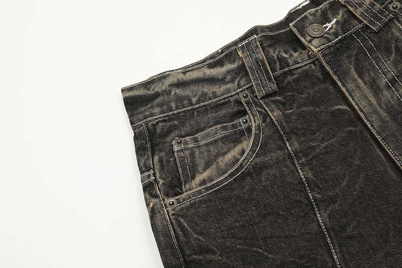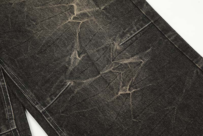 하이 스트리트 빈티지 라이트닝 패턴 오래 된 넓은 다리 청바지 남성 스트리트 패션 브랜드 느슨한 넓은 다리 캐주얼 바지스토어 가기