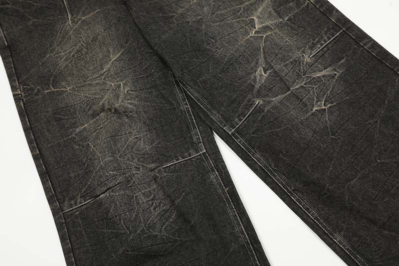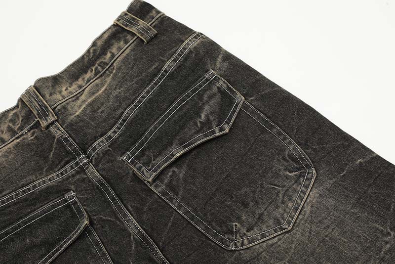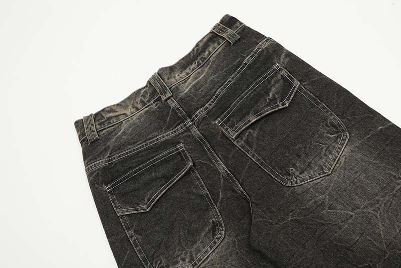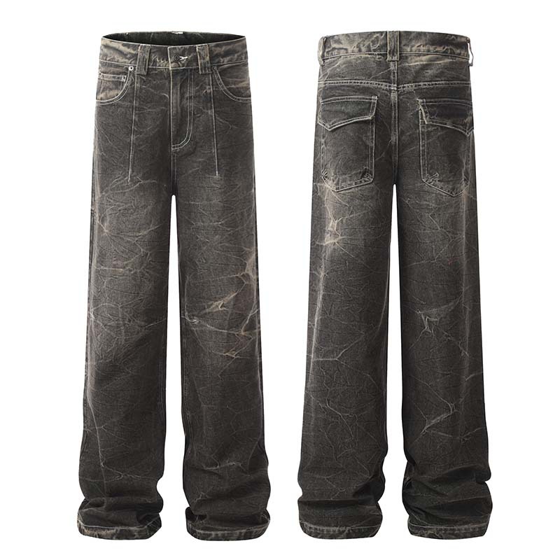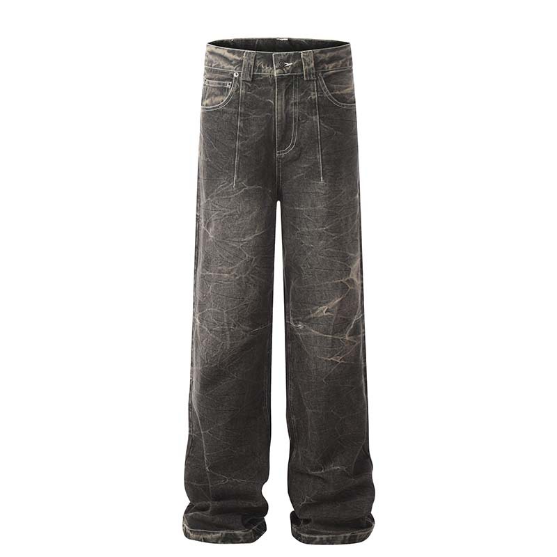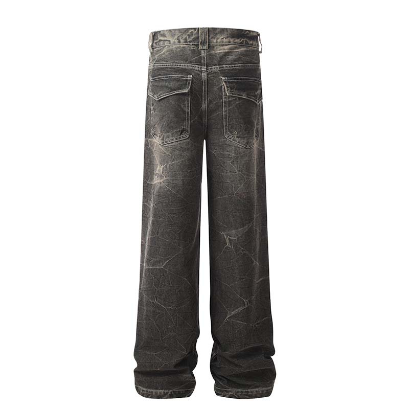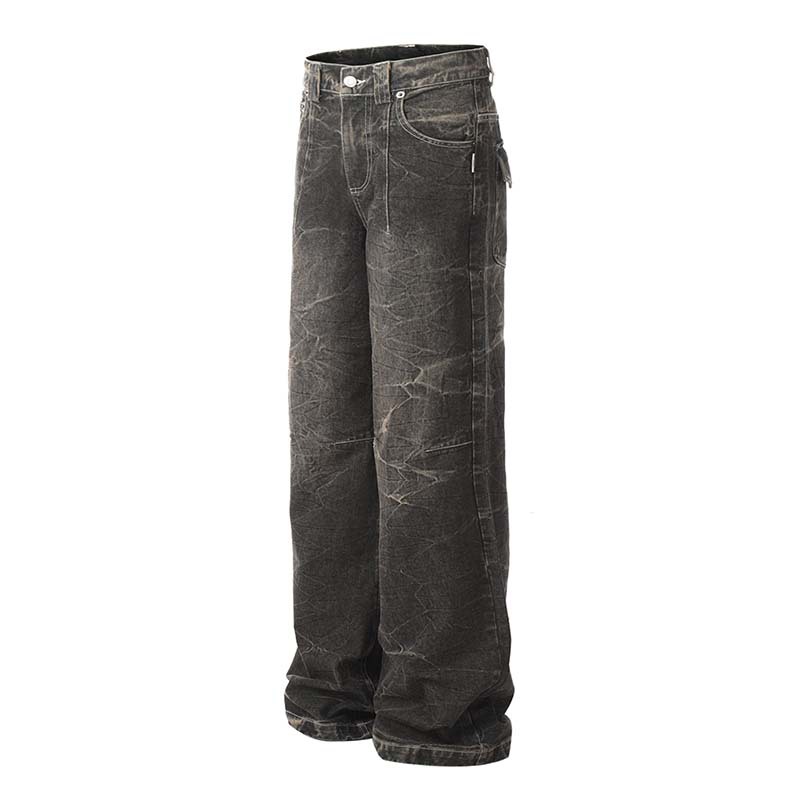 하이 스트리트 빈티지 라이트닝 패턴 오래 된 넓은 다리 청바지 남성 스트리트 패션 브랜드 느슨한 넓은 다리 캐주얼 바지