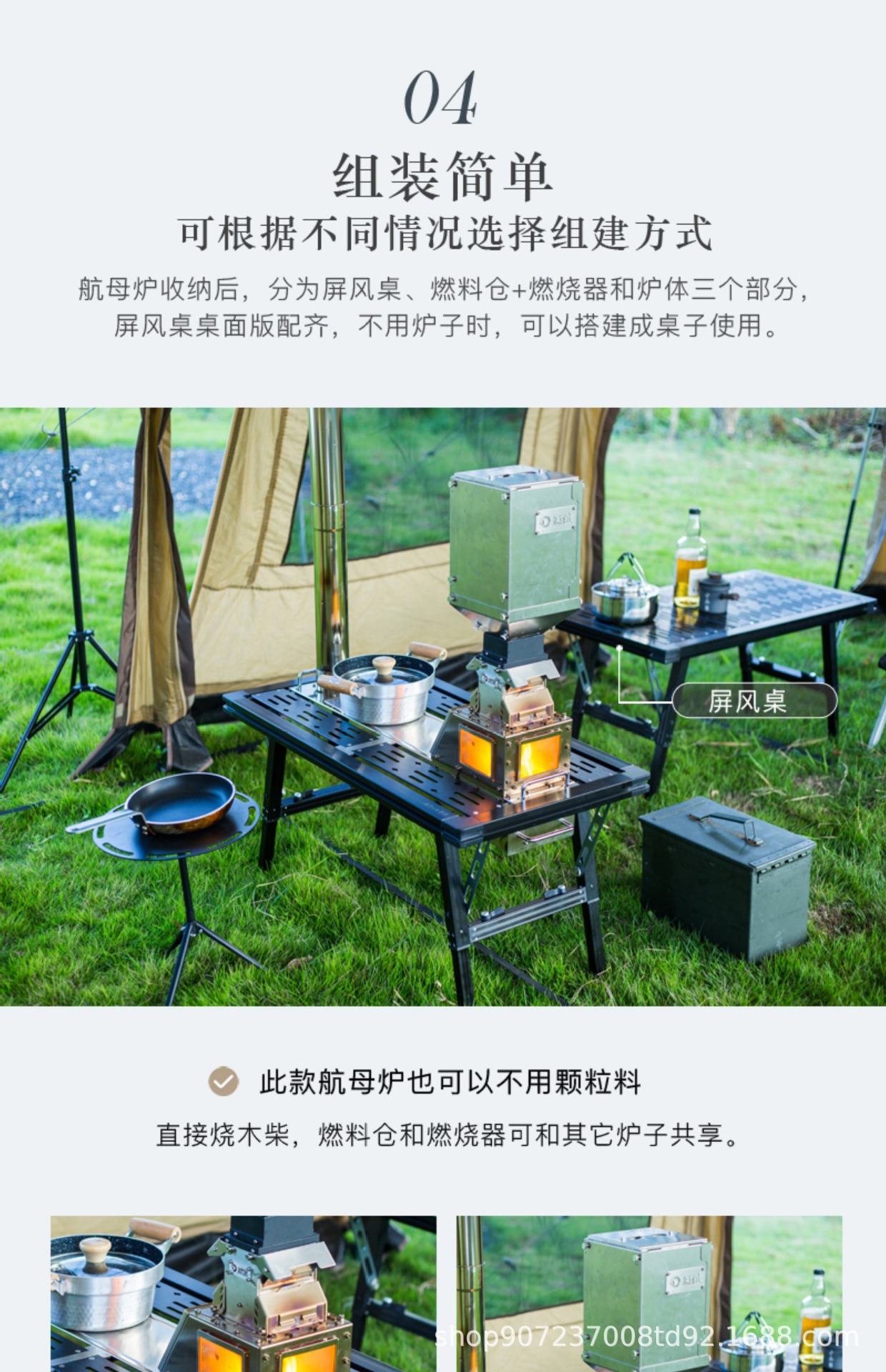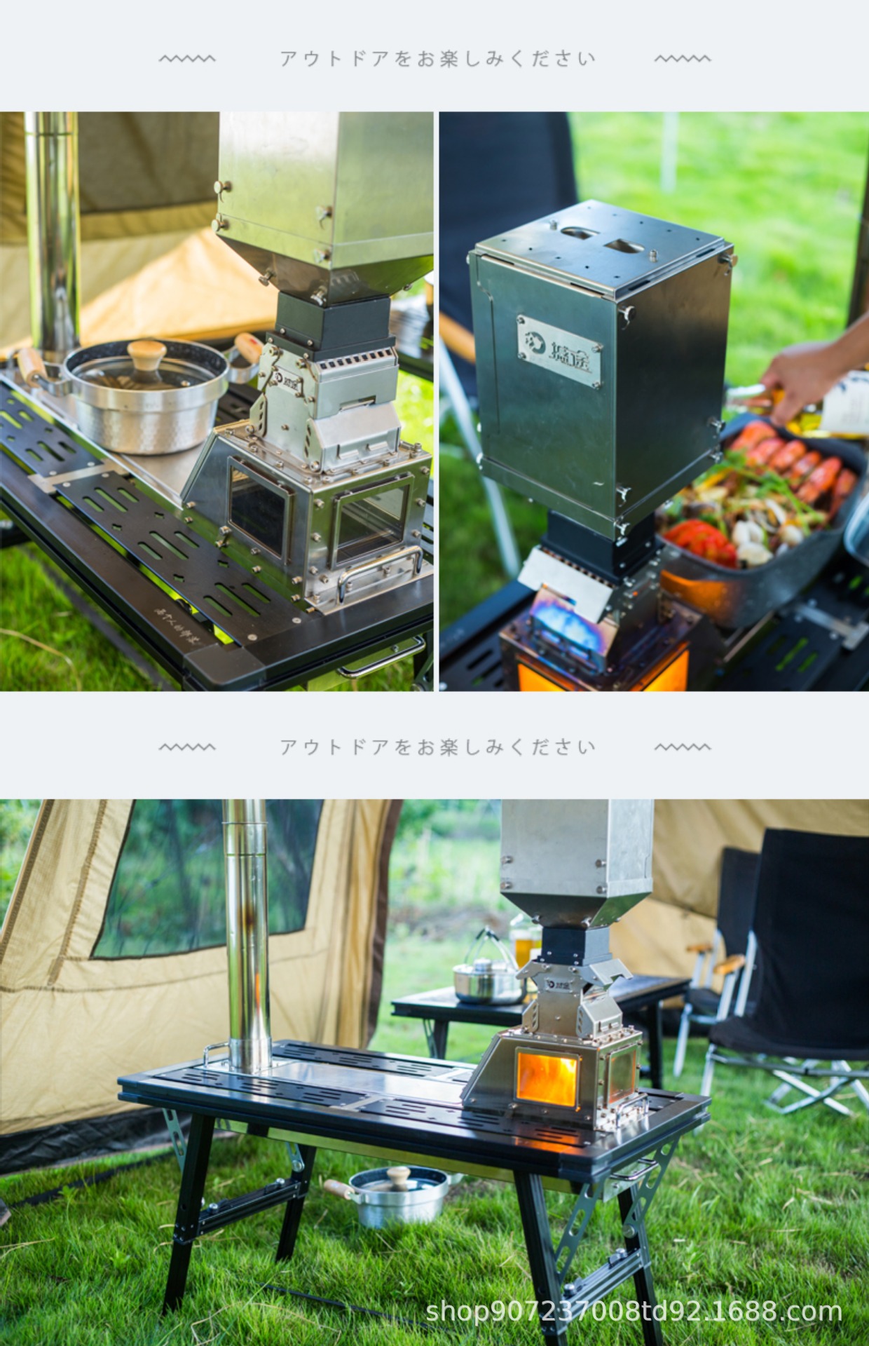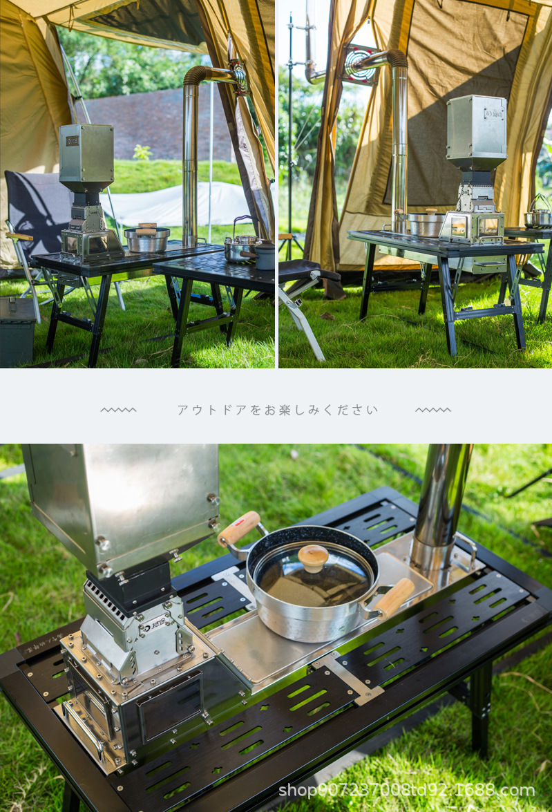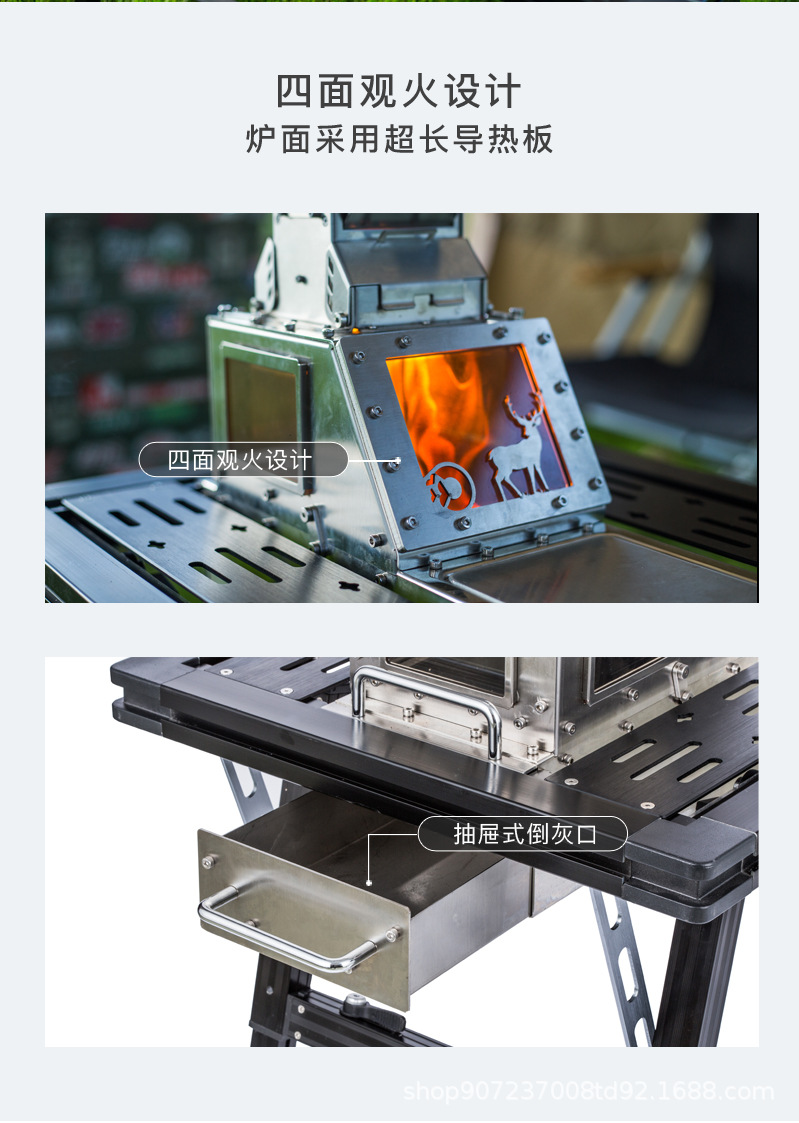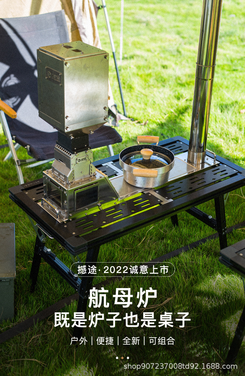 접이식 테이블이 있는 해추 항공모함형 난로, 스테인리스 장작 난로, 캠핑 난로, 야외 휴대용 난로