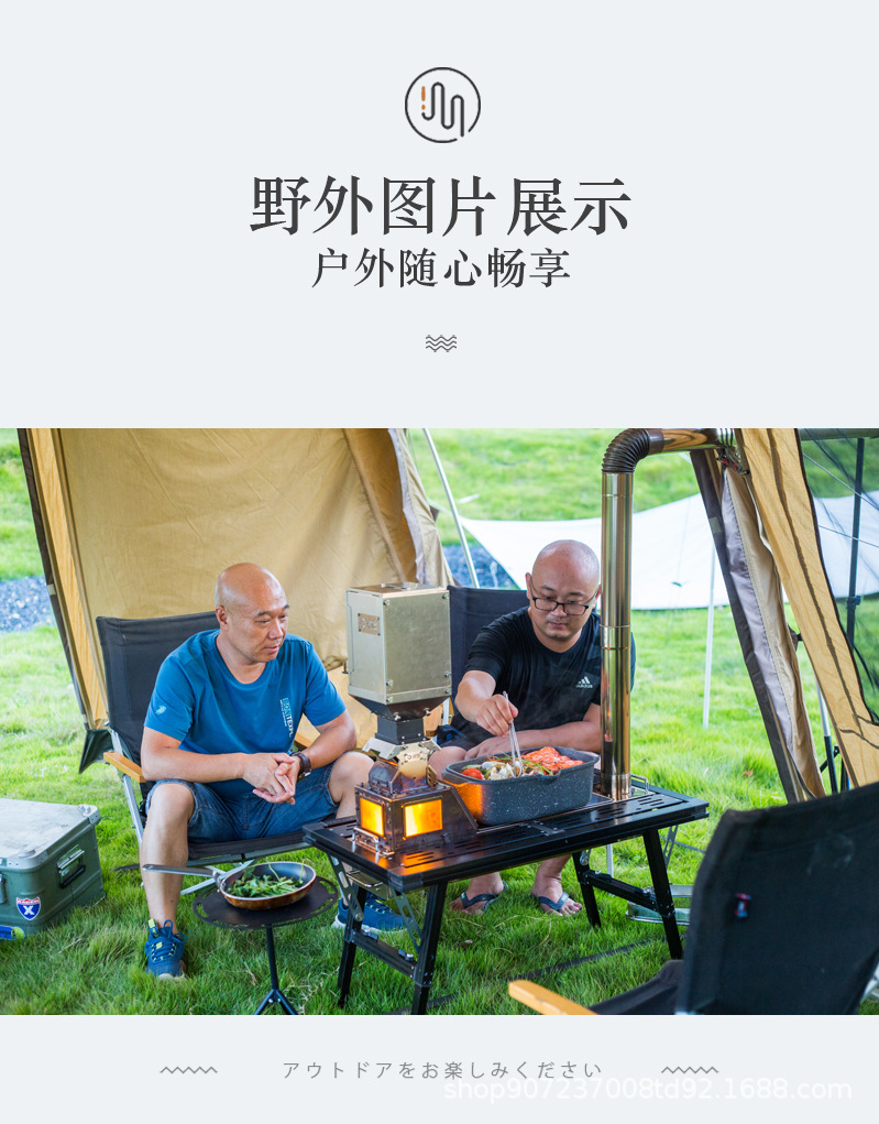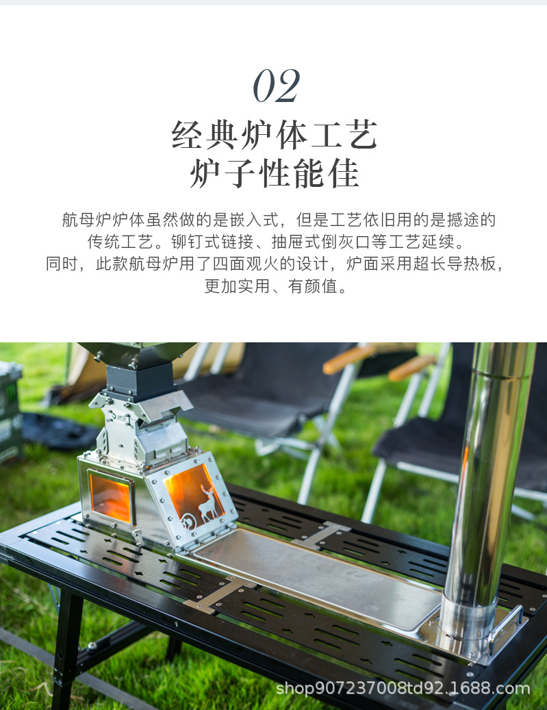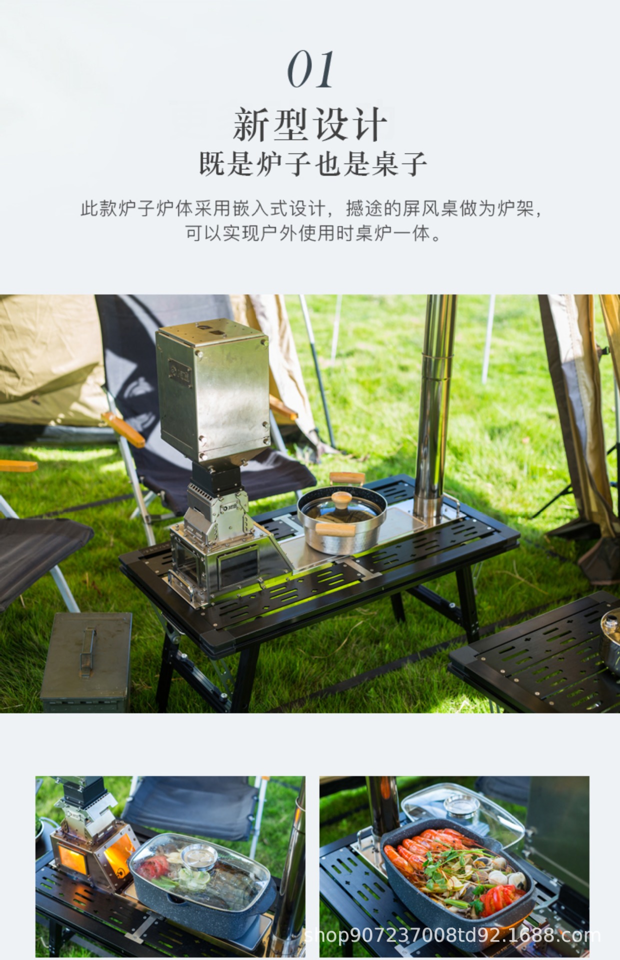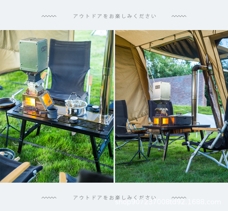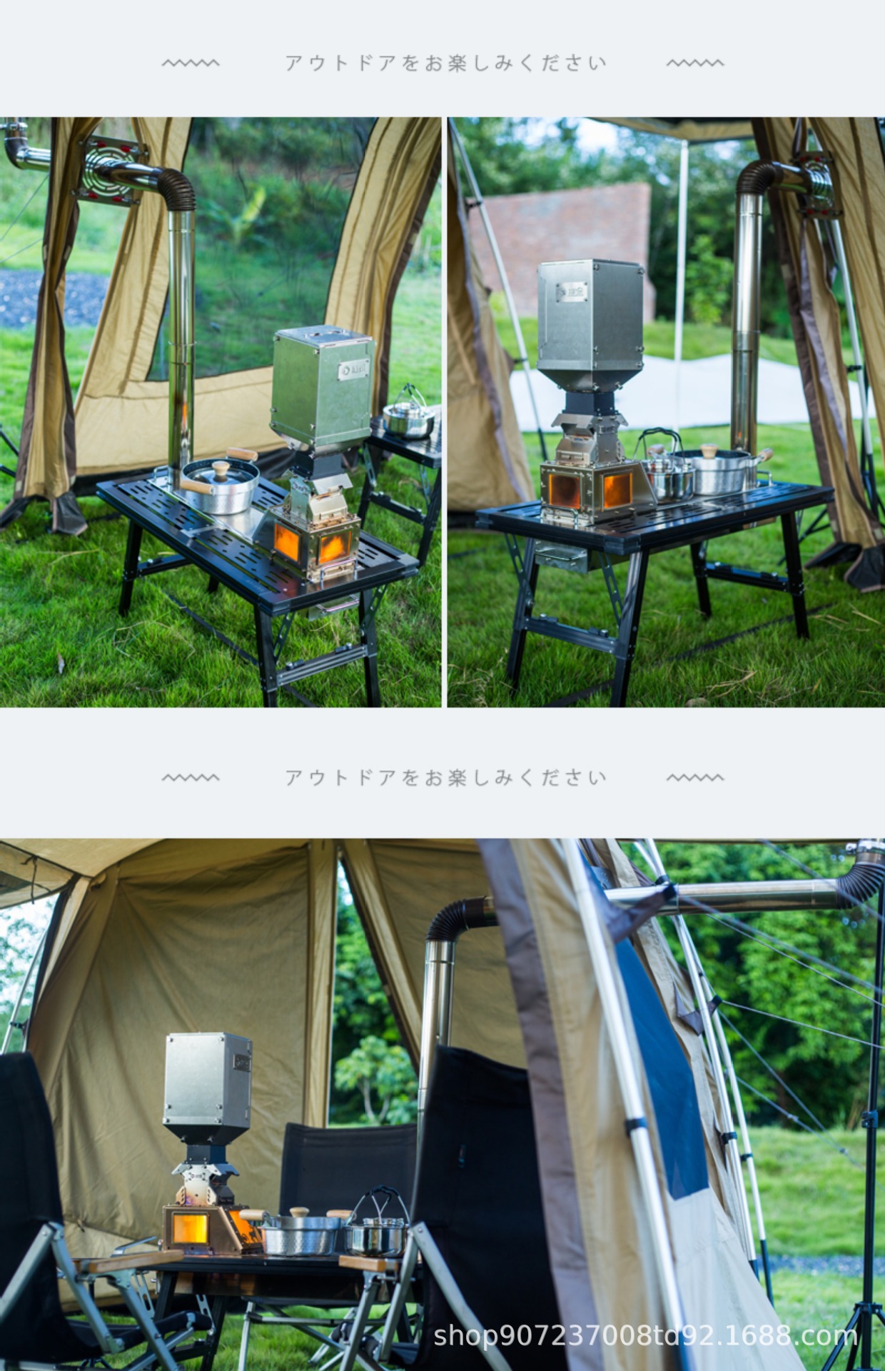 접이식 테이블이 있는 해추 항공모함형 난로, 스테인리스 장작 난로, 캠핑 난로, 야외 휴대용 난로
