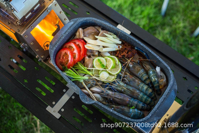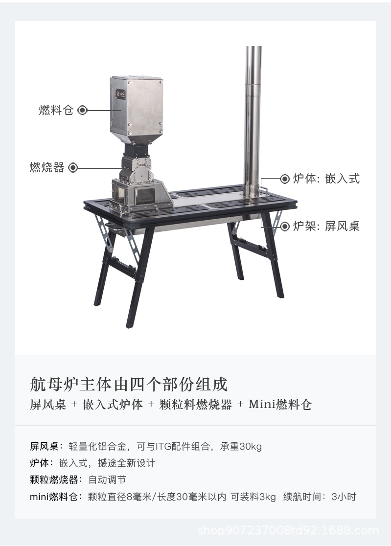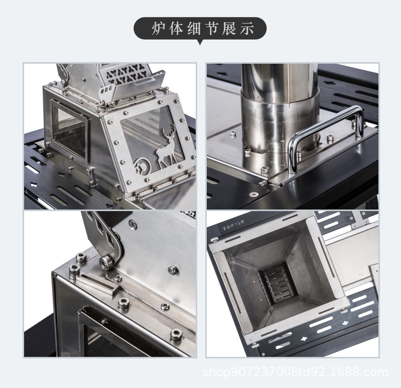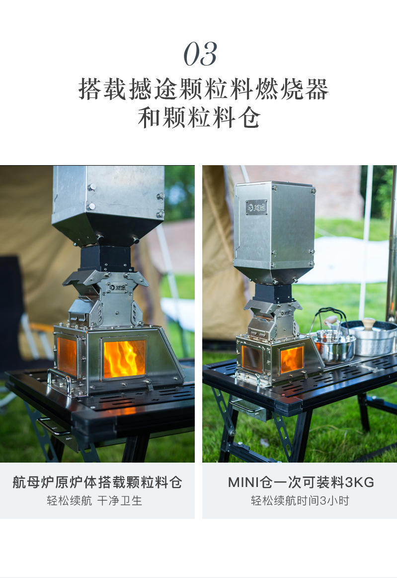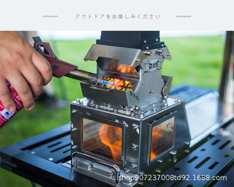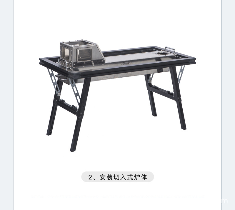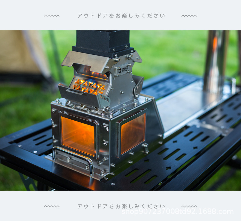 접이식 테이블이 있는 해추 항공모함형 난로, 스테인리스 장작 난로, 캠핑 난로, 야외 휴대용 난로