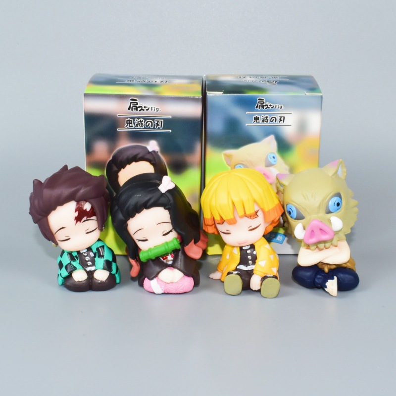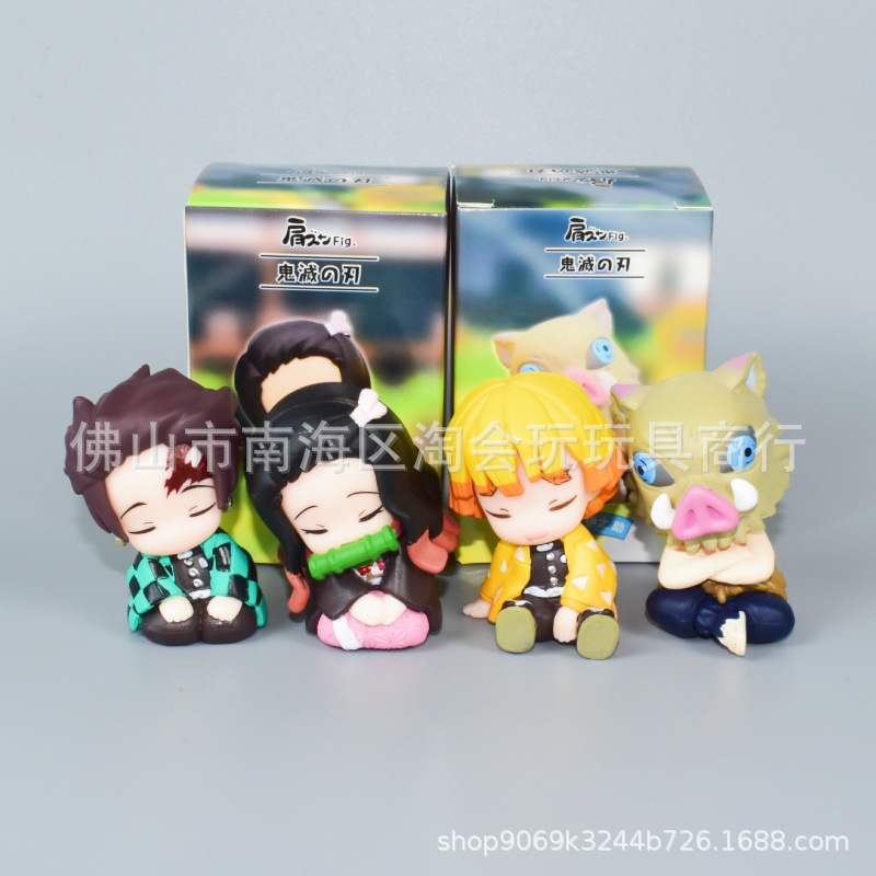 产品名称:q版坐姿鬼灭之刃肩靠肩扭蛋公仔 炭治郎 祢豆子 我妻善逸手办摆件