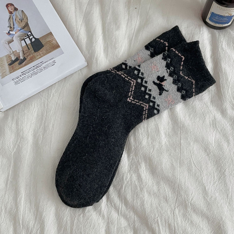 겨울 박람회 섬 빈티지 강아지 양말 여성의 가을과 겨울 두꺼운 따뜻한 울 활 만화 귀여운 튜브 양말스토어 가기
