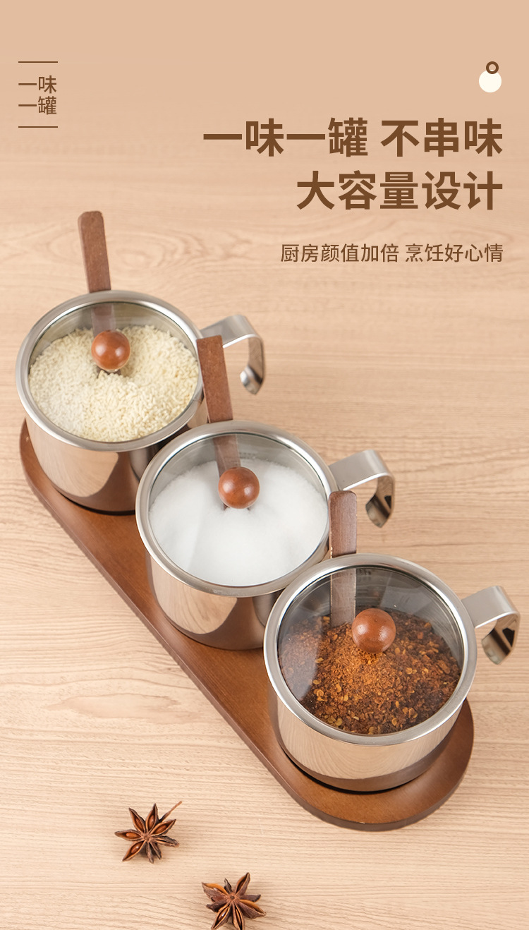 304 스테인레스 스틸 조미료 항아리 조미료 소금 항아리 주방 보관 상자 조미료 상자 고급 가정용 세트 빈티지