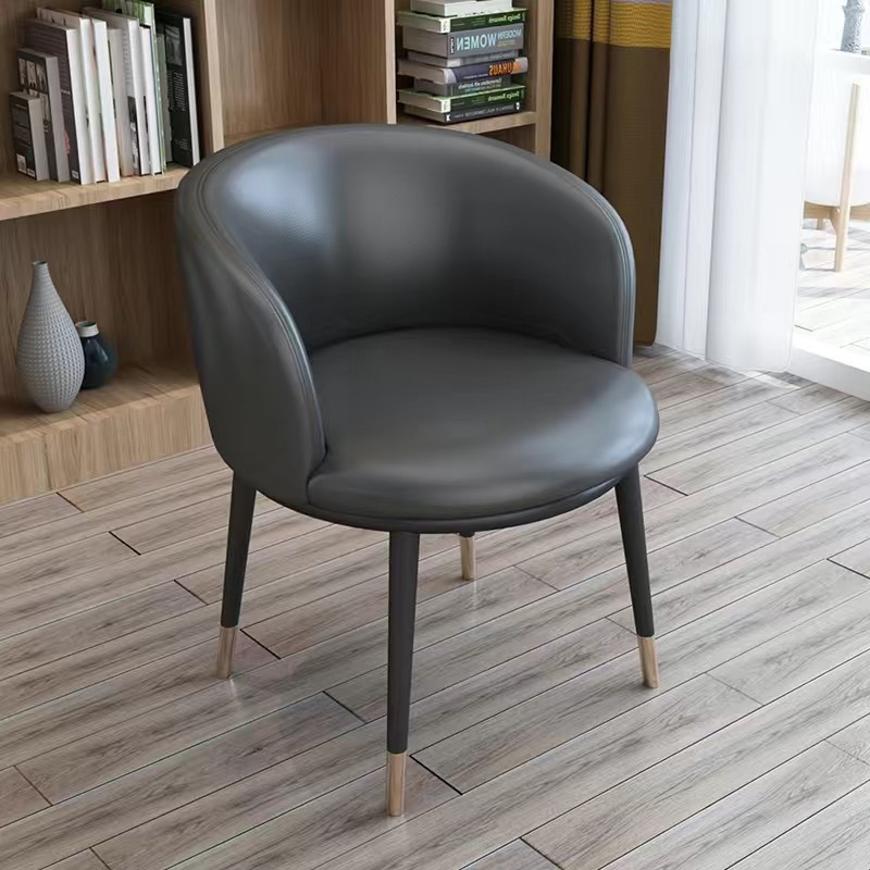 • 의자 스모크 그레이 가죽 블랙 골드 다리