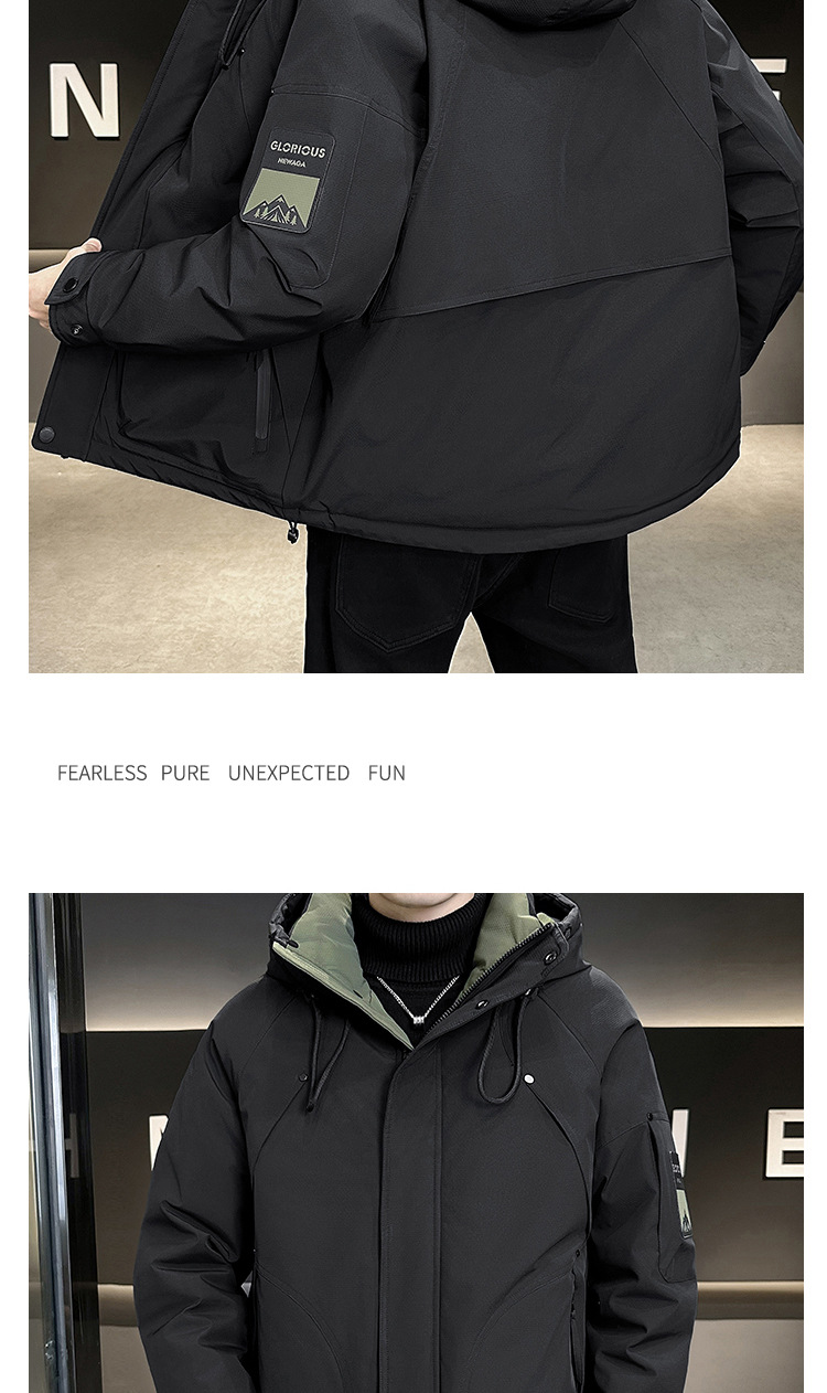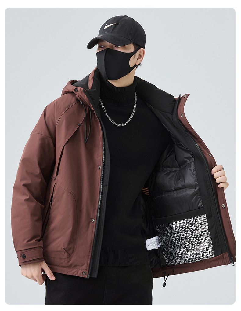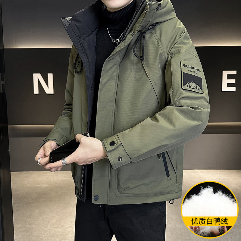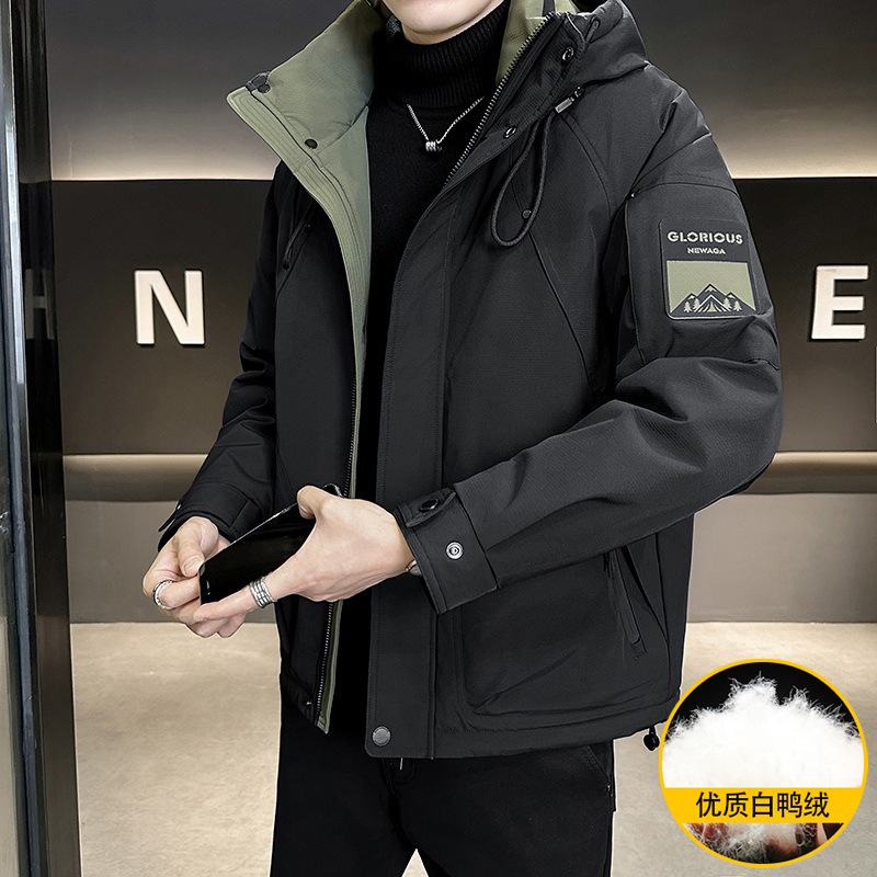 새로운 국가 표준 50 벨벳 남성 다운 재킷 2024 겨울 두꺼운 따뜻한 느슨한 남성 후드 오리 다운 재킷스토어 가기