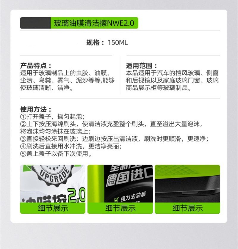 유리 오일 필름 청소, 닦기, 오일 필름 제거제, 자동차 앞 유리 청소, 매달리지 않는 물, 강한 오염 제거 및 오일 제거를위한 특수스토어 가기