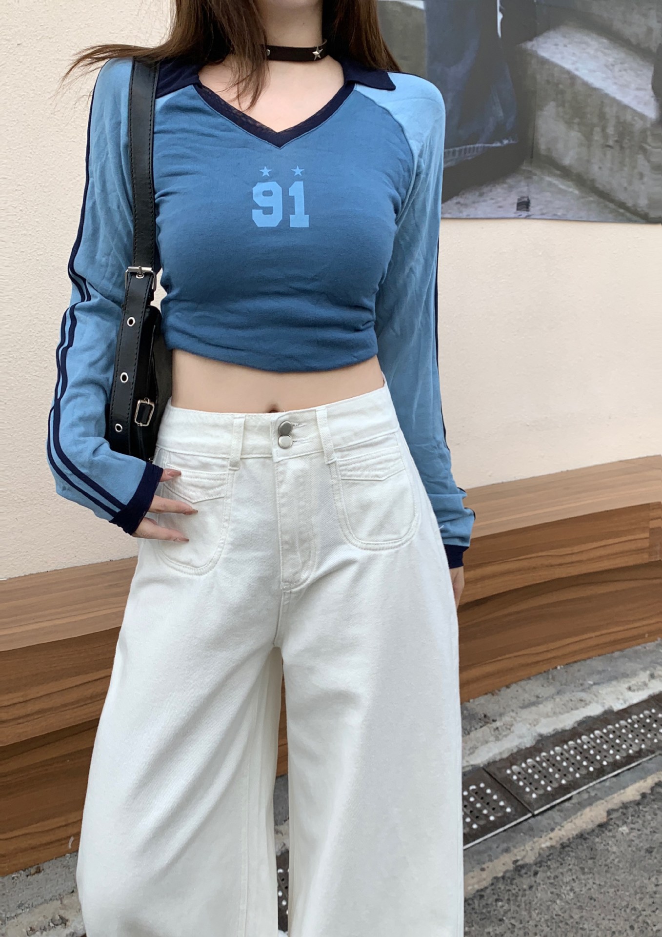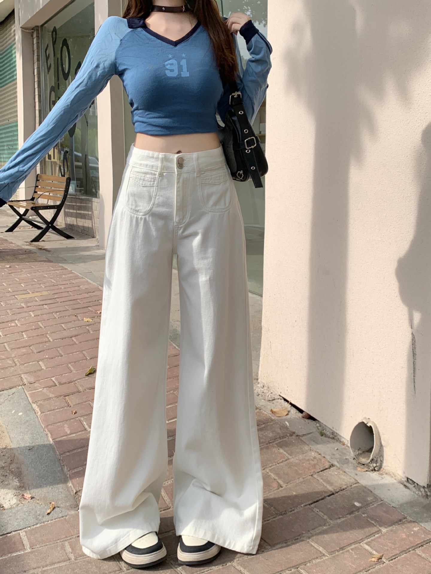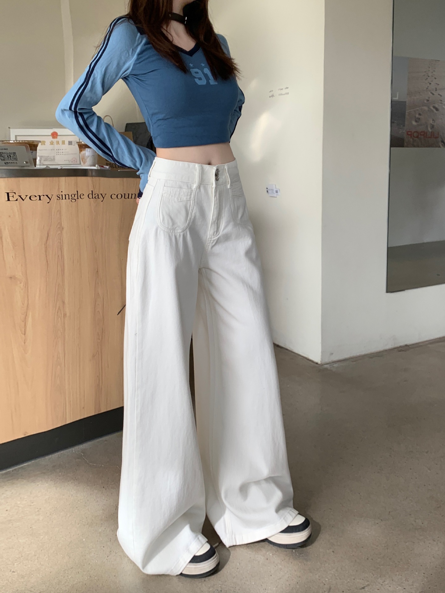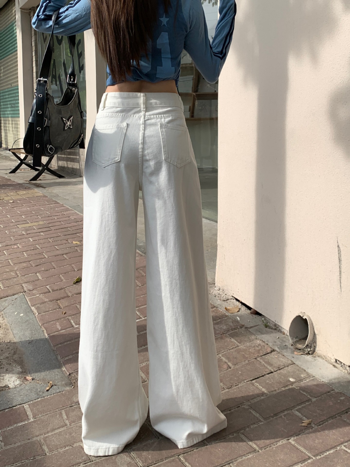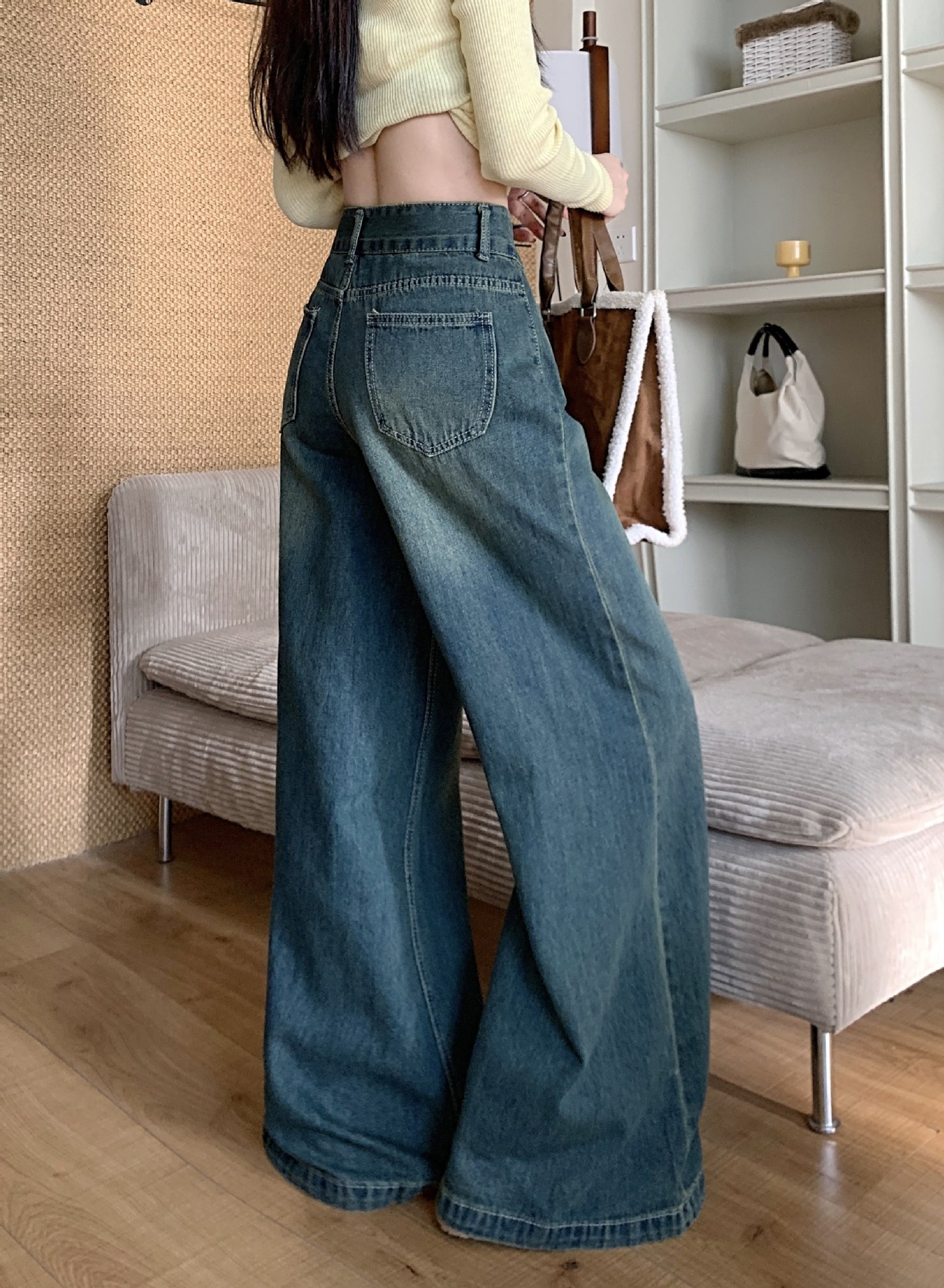 2025 새로운 블랙 더블 가슴 포켓 디자인 넓은 다리 청바지 여성의 봄 새로운 높은 허리 느슨한 걸레 바지스토어 가기