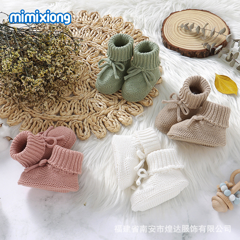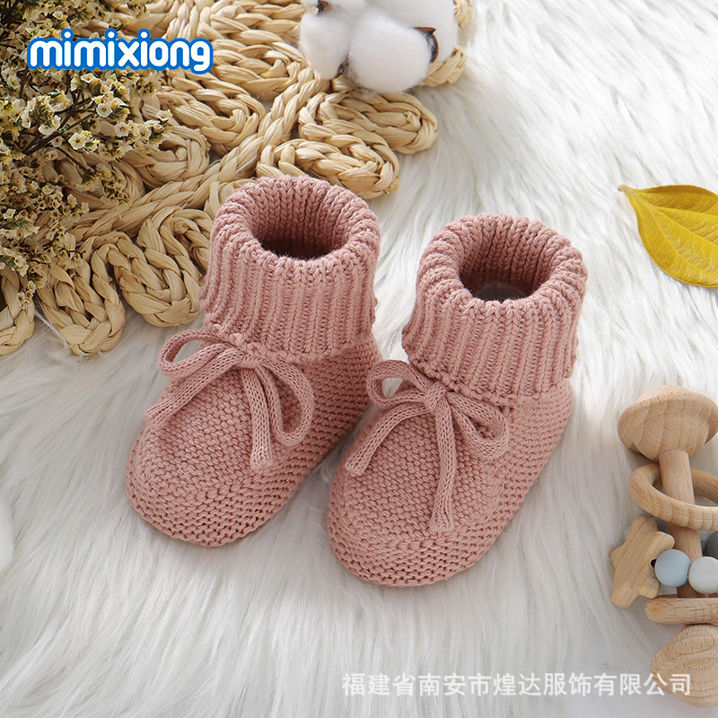 Ins 뜨거운 판매 가을, 겨울 새로운 유아 단색 귀여운 활 니트 유아 신발 양모 니트 바닥 양말