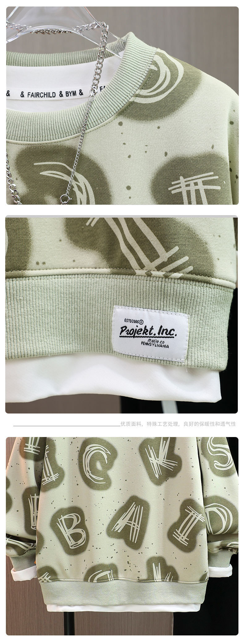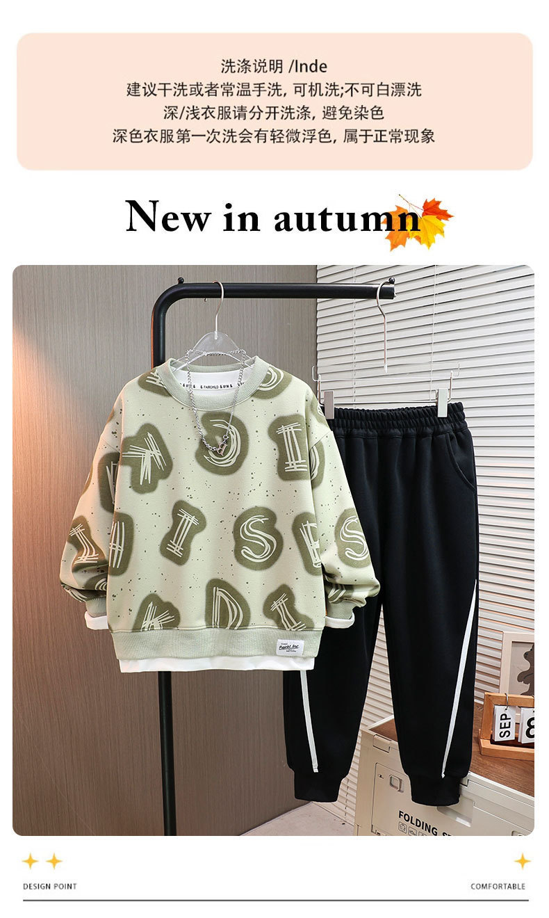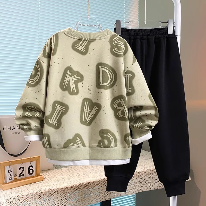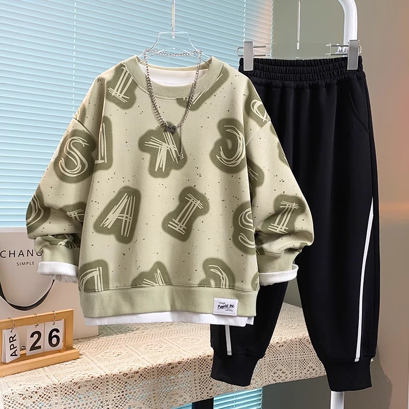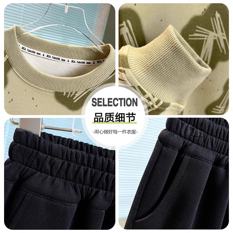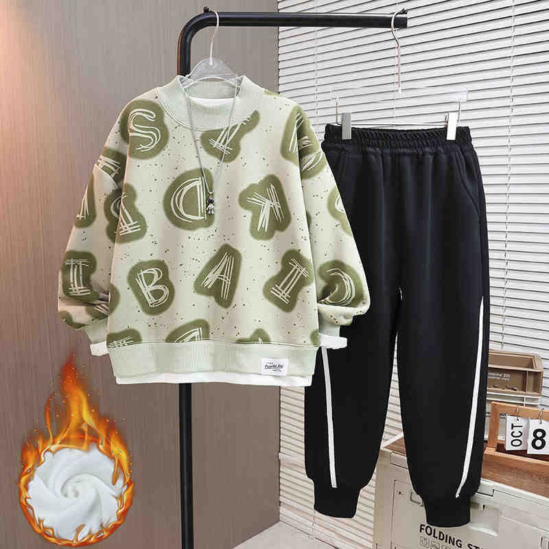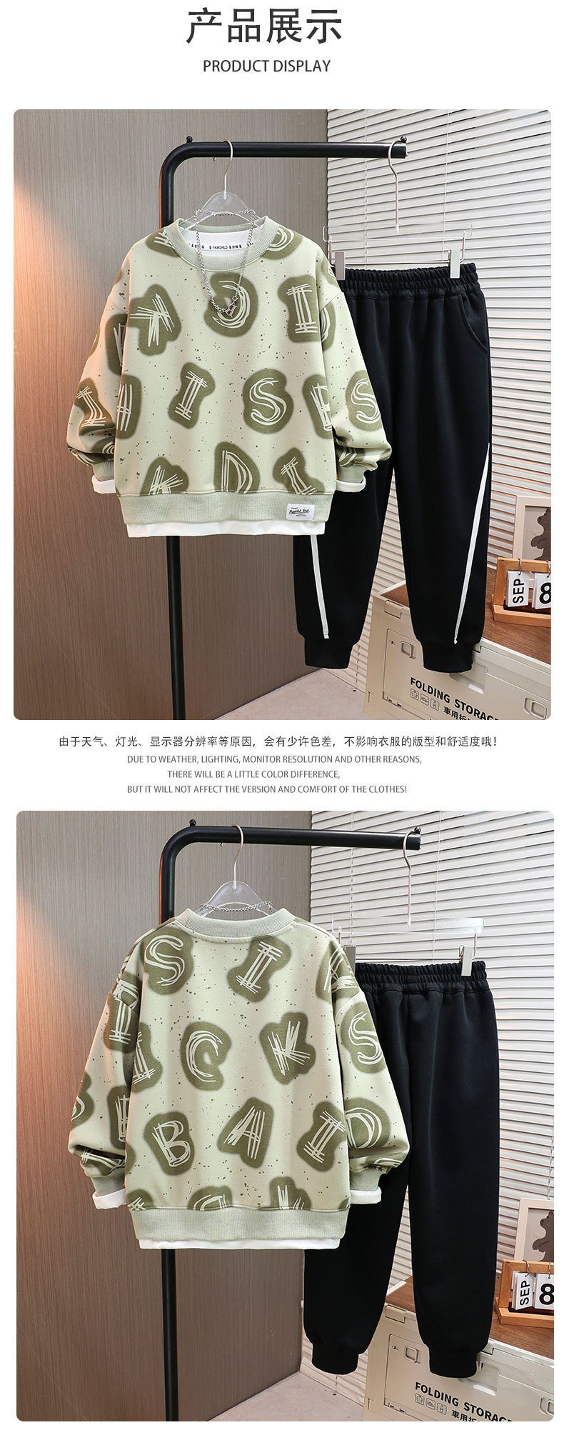 소년 세트 가을 2024 새로운 남성의 큰 어린이 조끼 가을과 겨울 캐주얼 스포츠 의류 기모 잘 생긴 패션스토어 가기