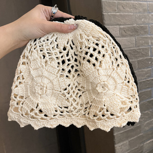 民族风手工钩花针织毛线帽子女春秋季出游拍照包头帽大头围镂空帽 RMB:17.50