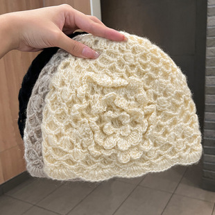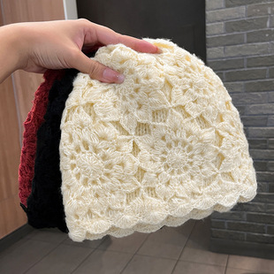 日系双层手工钩花套头帽子女秋冬韩版百搭保暖针织毛线帽包头帽子 RMB:18.00