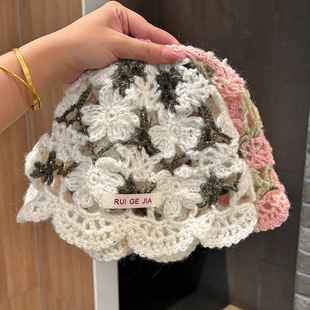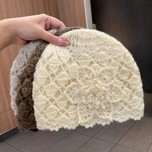 春秋季原创手工显脸小钩花立体花朵包头帽女款文艺复古针织堆堆帽 RMB:18.00