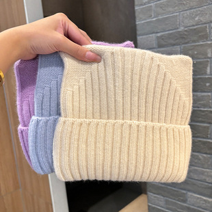 糖果色猫耳朵针织毛线帽子女春秋季腈纶加厚韩版新款套头护耳帽 RMB:32.00