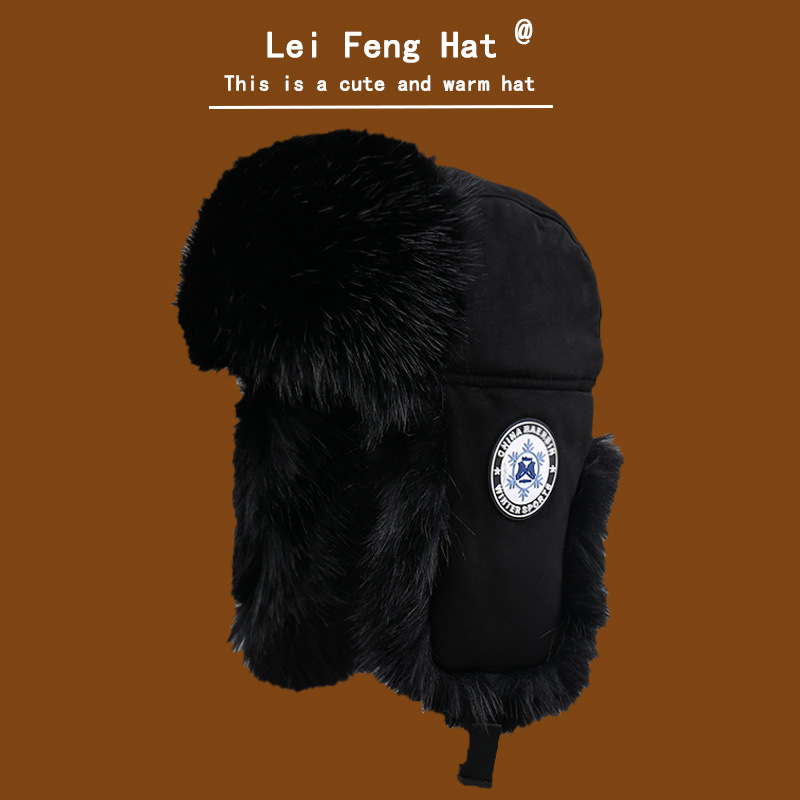 Lei Feng Hat 남성과 여성의 겨울 모방 밍크 헤어 두꺼운 따뜻한 방한 귀 보호 모자 동북 야외 사이클링 방풍 면화 모자