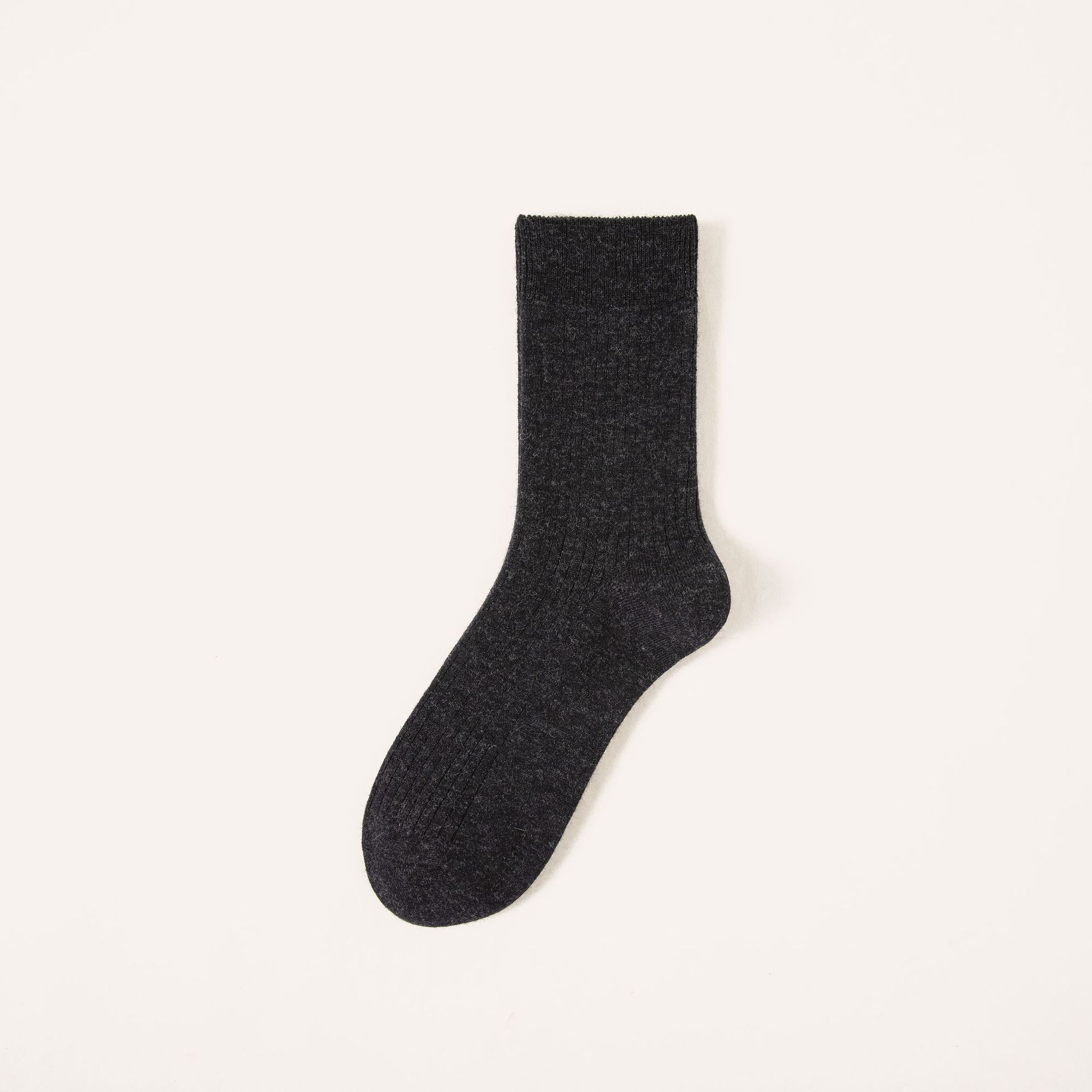 • 더블 니들 솔리드 컬러 울 양말 - 다크 그레이