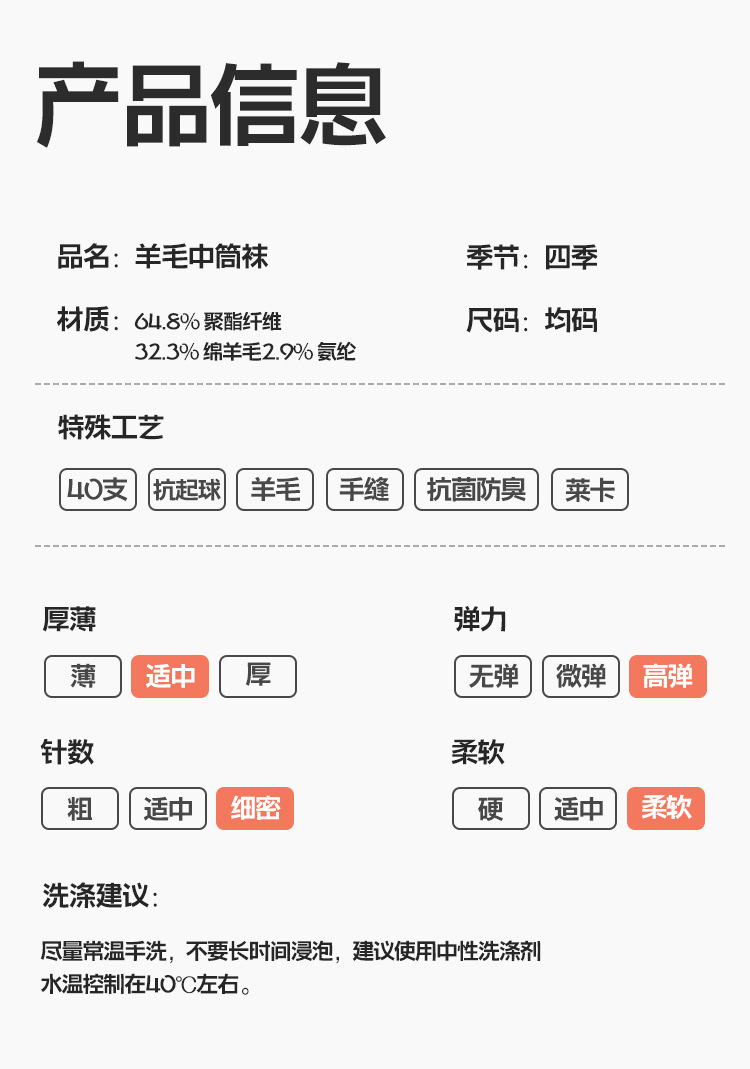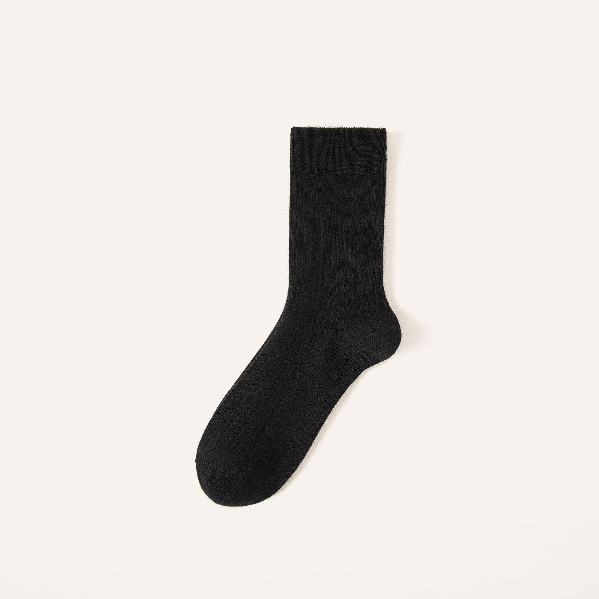 • 더블 니들 솔리드 컬러 울 양말 - 블랙