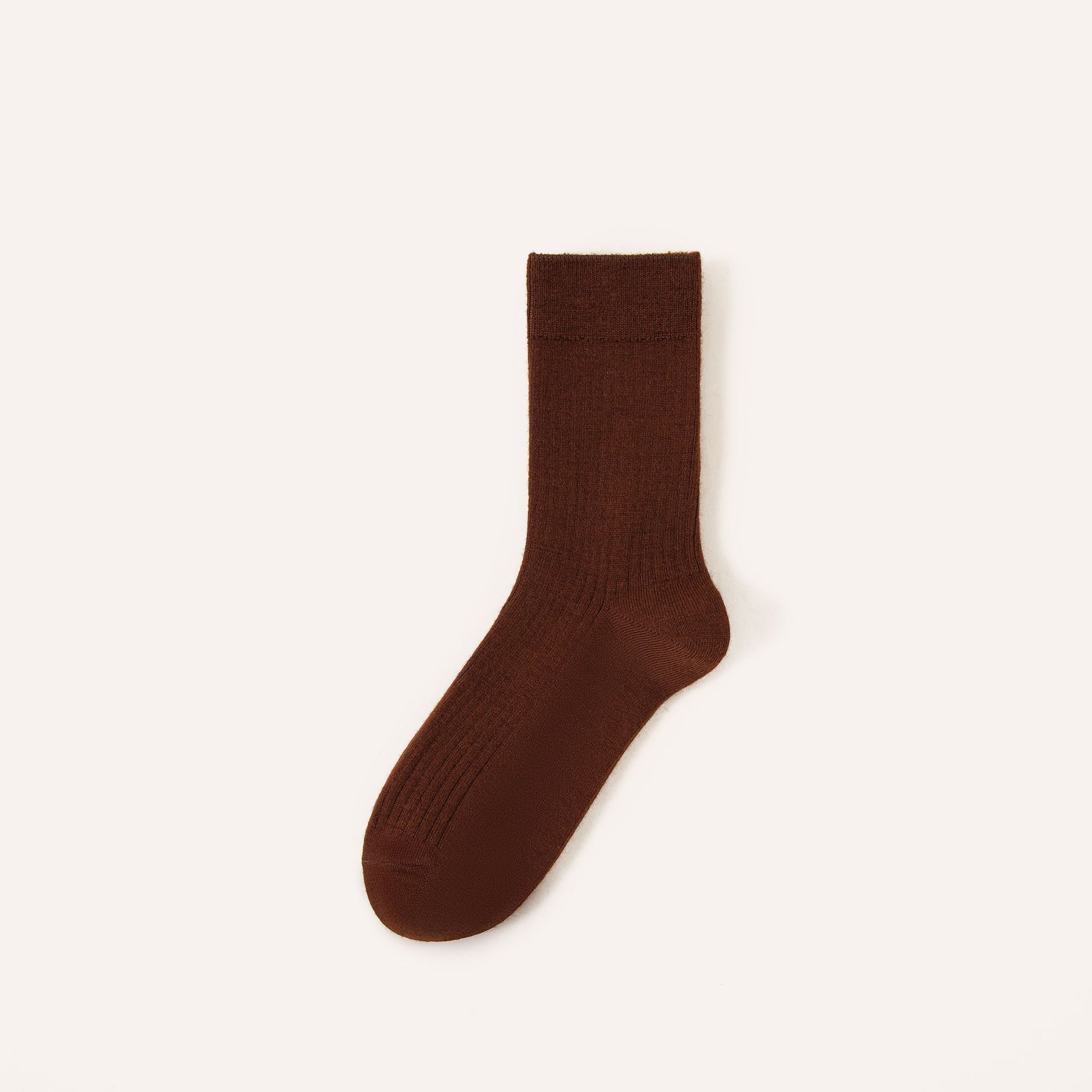 • 더블 니들 솔리드 컬러 울 양말 - 커피