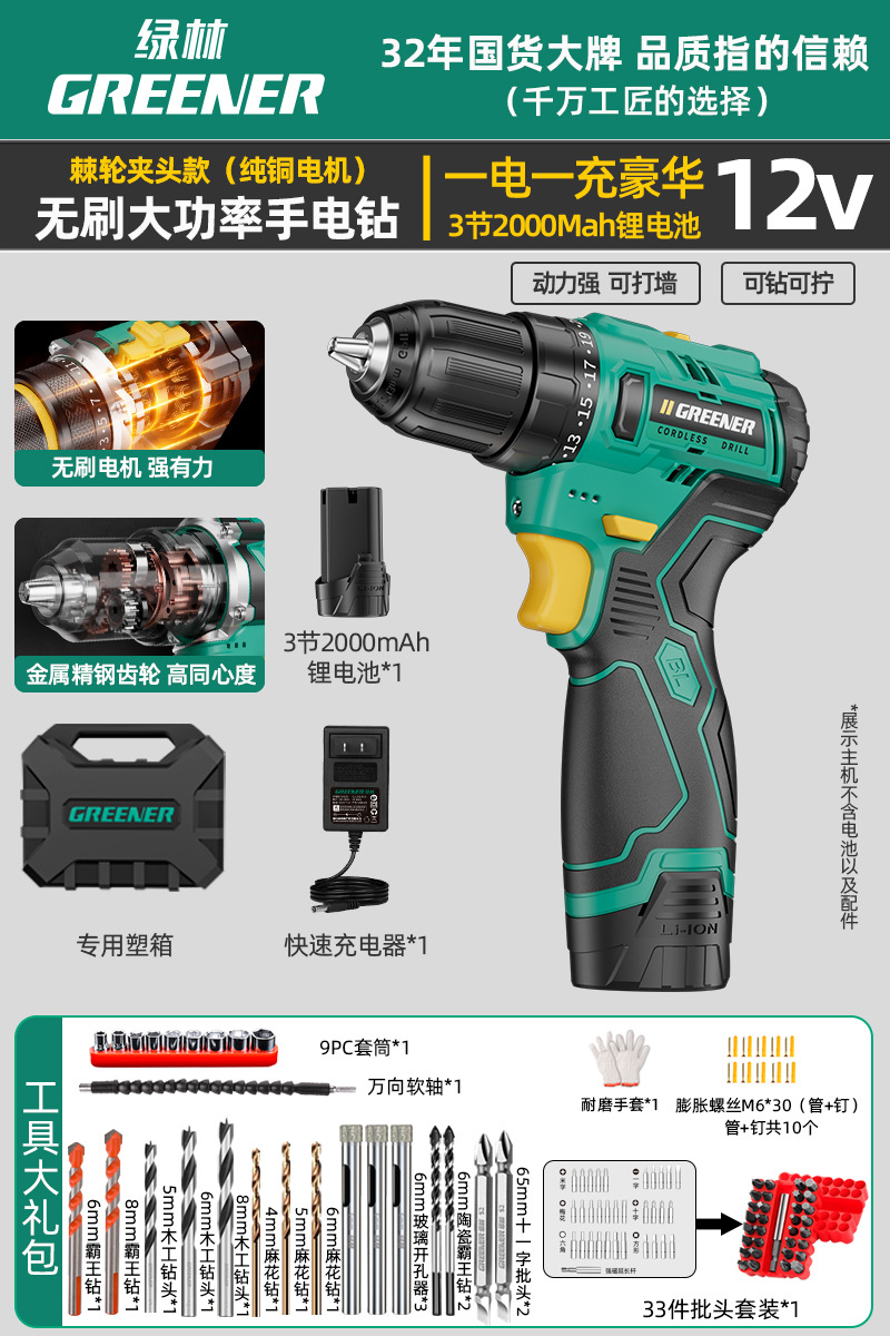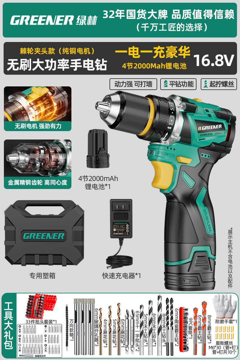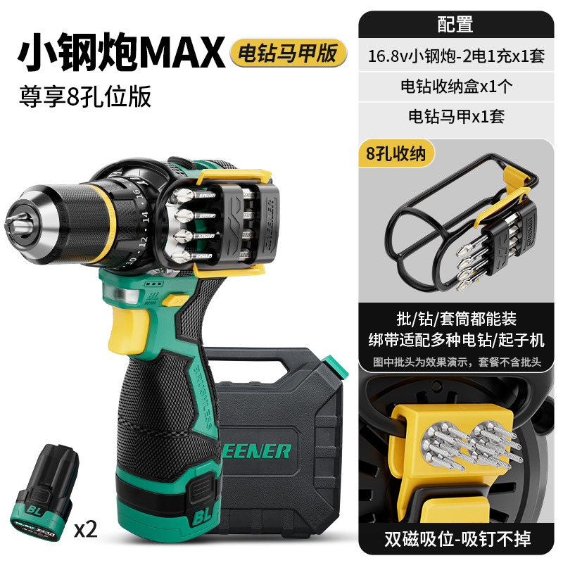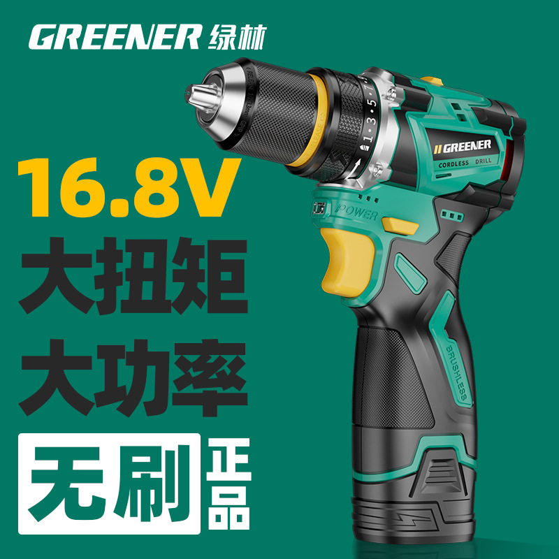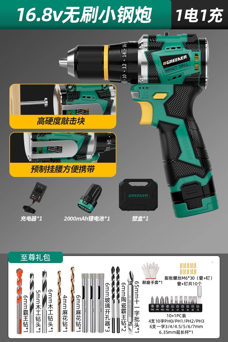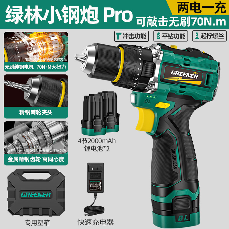 • 녹색 숲 작은 강철 대포 전기 드릴 충격 브러시리스 핸드 전기 드릴 가정용 권총 드릴 충전식 리튬 전기 드릴 다기능 벽 구멍