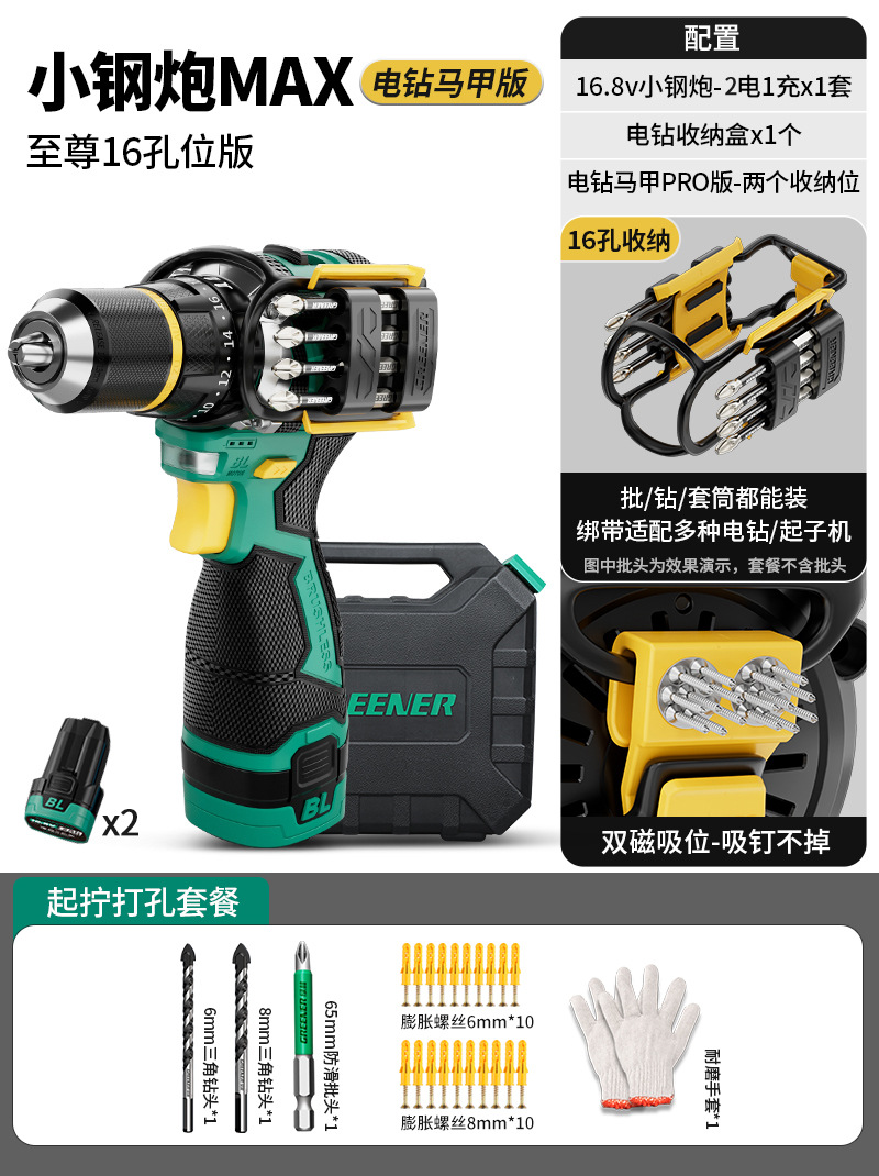 • 드릴 선물 팩 [배터리 1개, 충전 1개] 16.8v 브러시리스 임팩트 소형 강철 대포