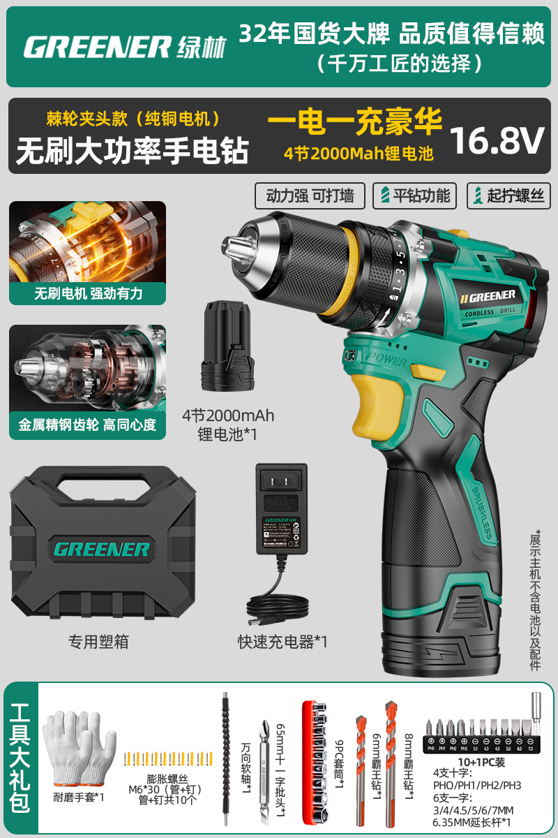 • 55N.M 만능 플래그십 모델 [브러시리스 16.8v] 배터리 1개, 충전 1개 + 홈 데코레이션에 일반적으로 사용되는 선물 패키지