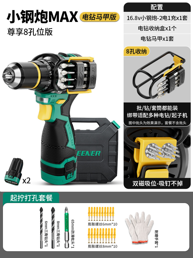 • 배터리 1개, 충전 1개▲조끼 강철 대포▼(보관함*2+드릴 배치) 브러시리스 임팩트