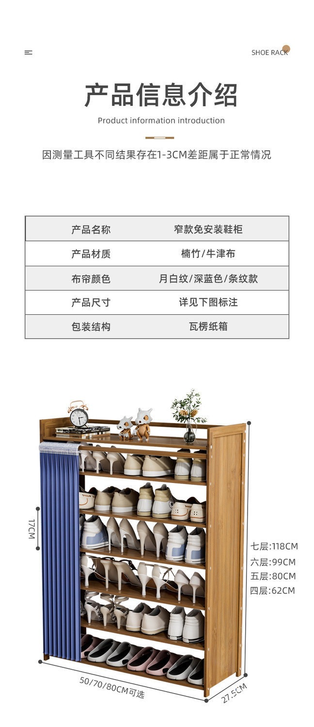 • 설치가 필요 없는 파란색 커튼 신발장(공장 직배송)