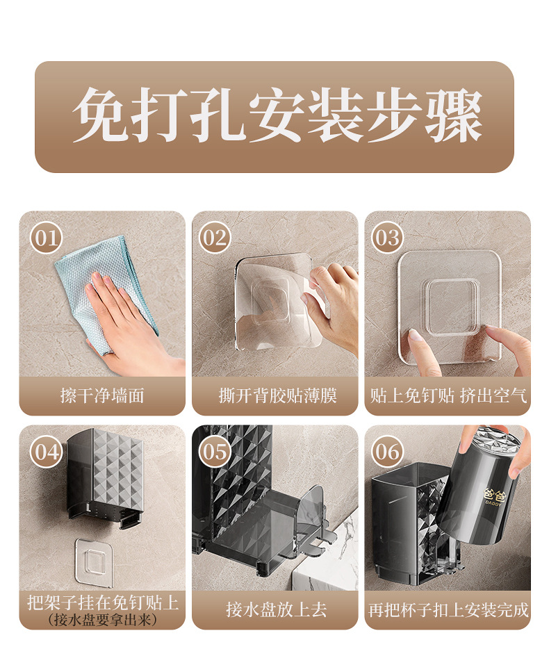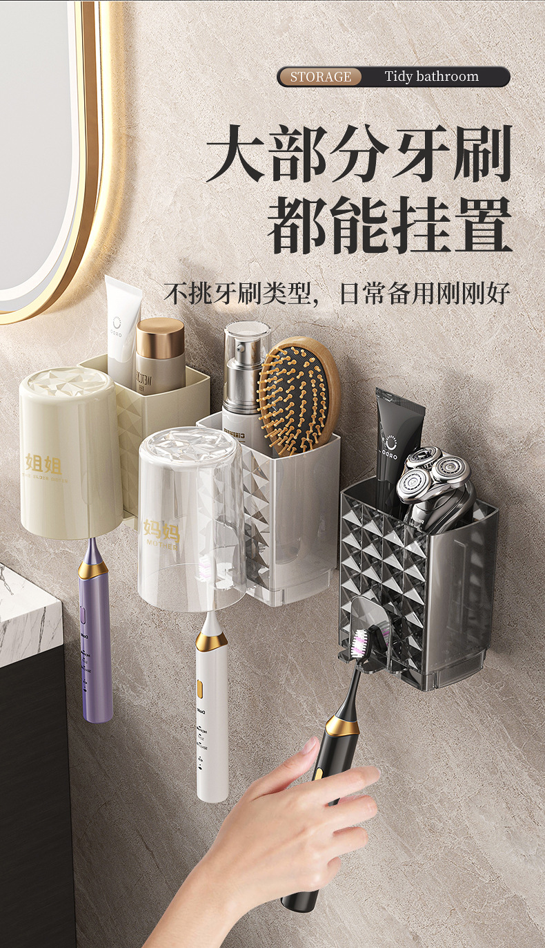 가벼운 고급 칫솔 보관 랙 비 천공 입 세척 컵 세트 컵 홀더 화장실 교수형 치약 보관 랙스토어 가기