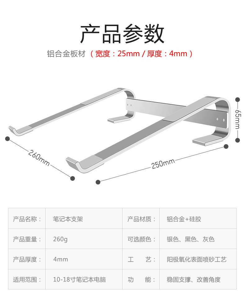 폭발 노트북 알루미늄 합금 데스크탑 브래킷 컴퓨터 브래킷 중단 알루미늄 합금 방열 강화 프레임 국경스토어 가기