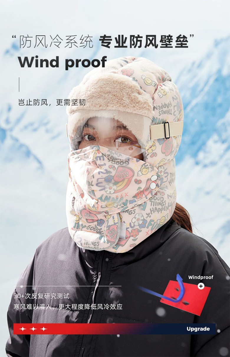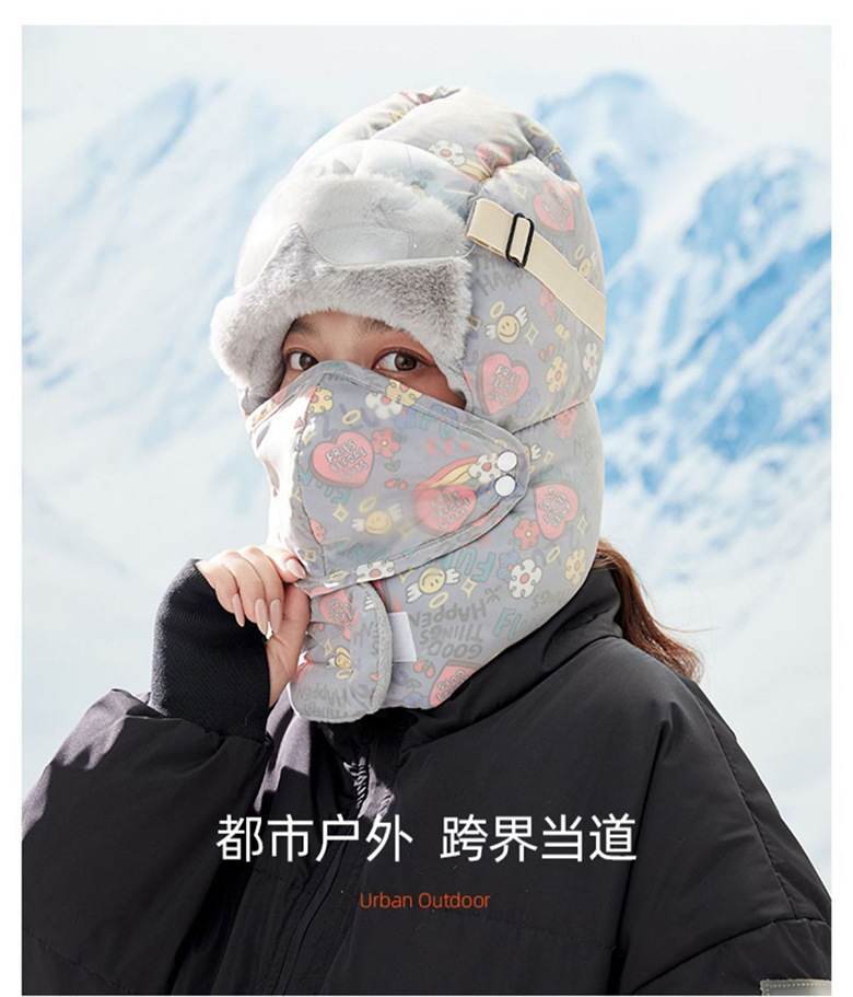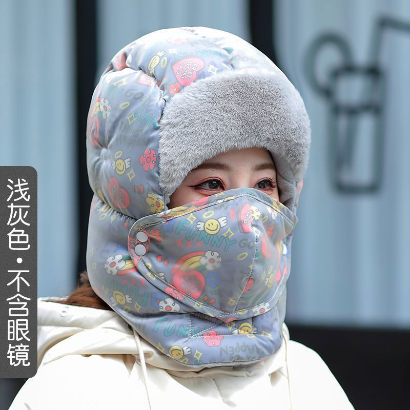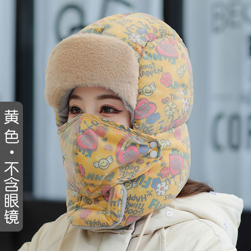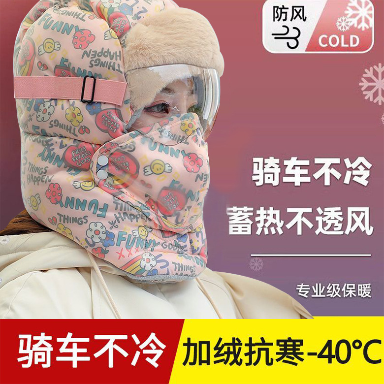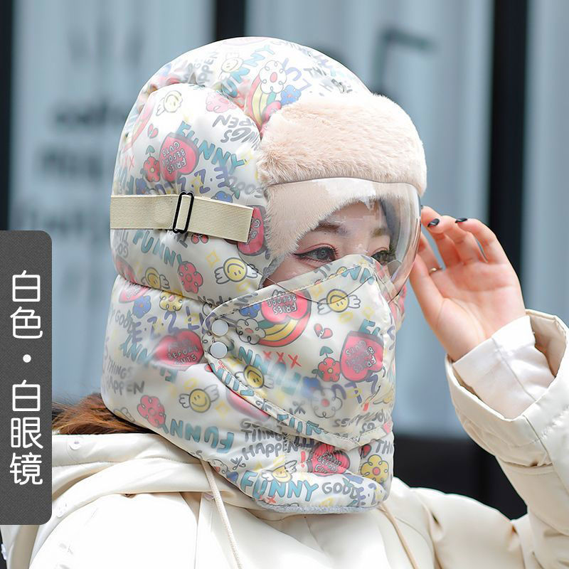 Lei Feng Hat 여성의 2024 새로운 패션 웨스턴 스타일 겨울 사이클링 기모 두꺼운 따뜻한 안경 모자 통합 스카프