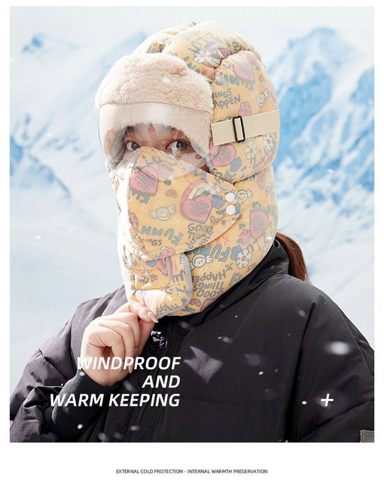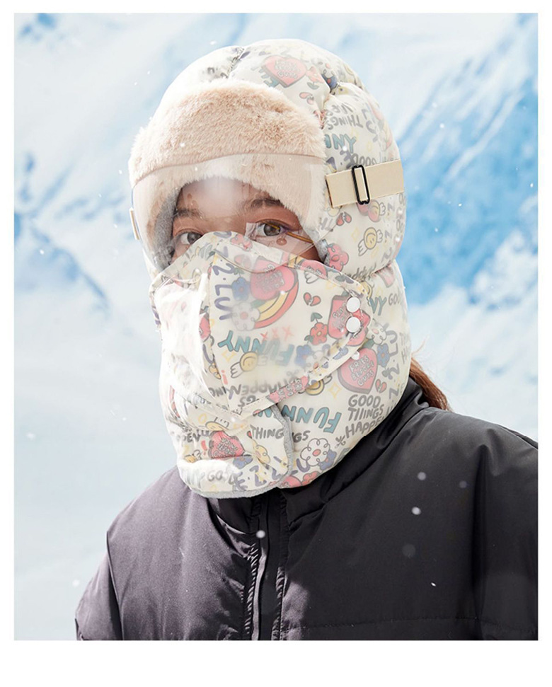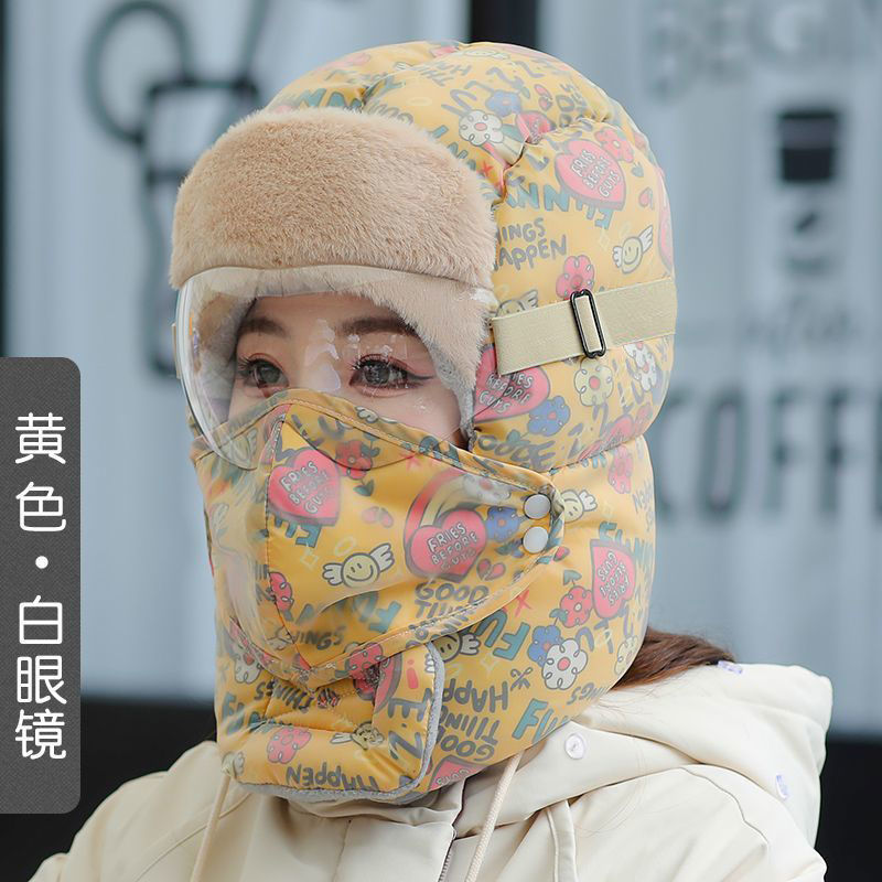 Lei Feng Hat 여성의 2024 새로운 패션 웨스턴 스타일 겨울 사이클링 기모 두꺼운 따뜻한 안경 모자 통합 스카프스토어 가기