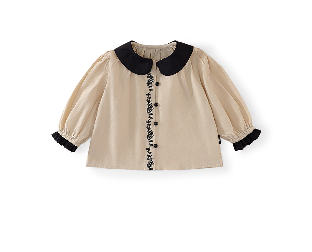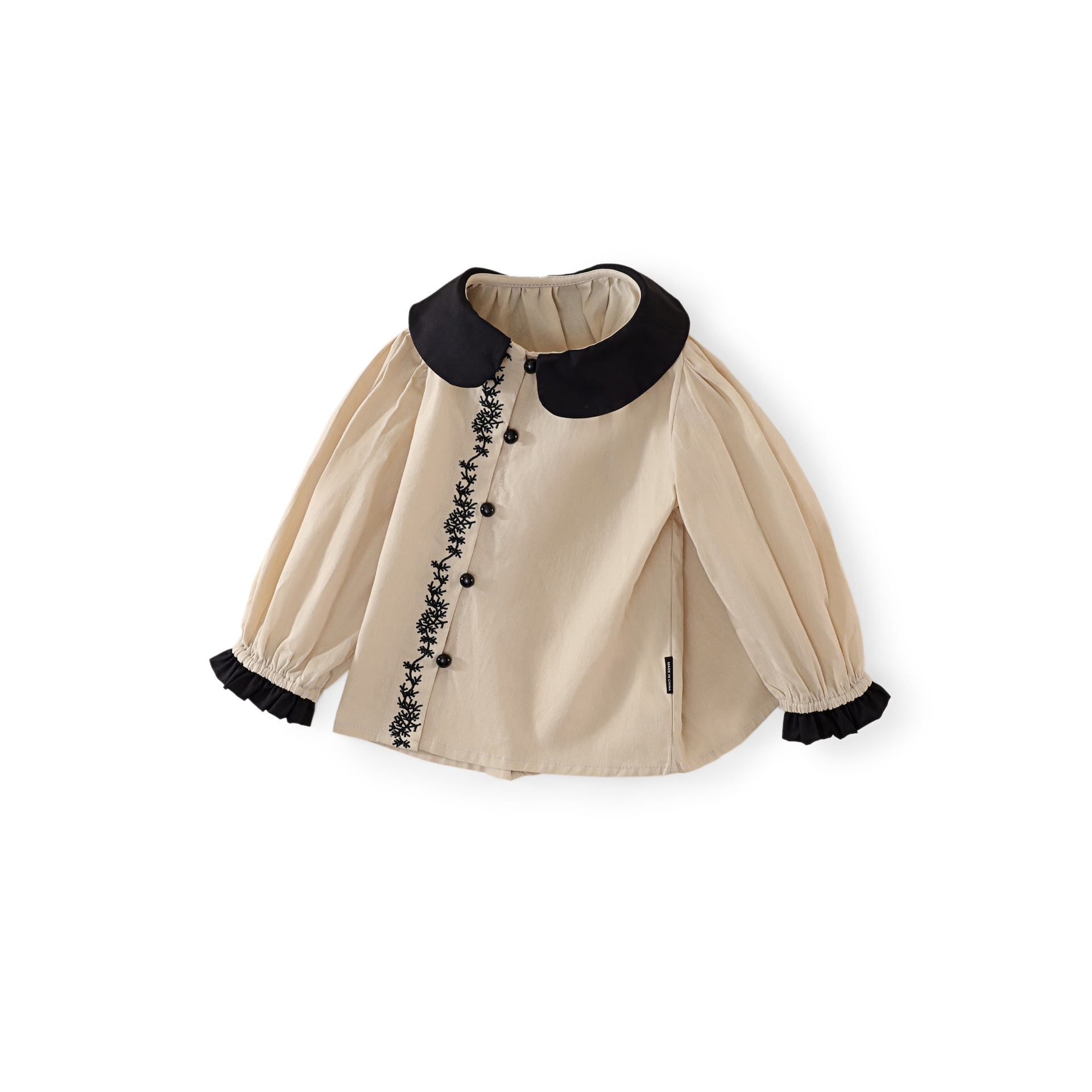 MDD 소녀 2025 봄과 가을 새로운 자수 상단 긴 소매 인형 칼라 셔츠 버튼 카디건 청바지 세트스토어 가기