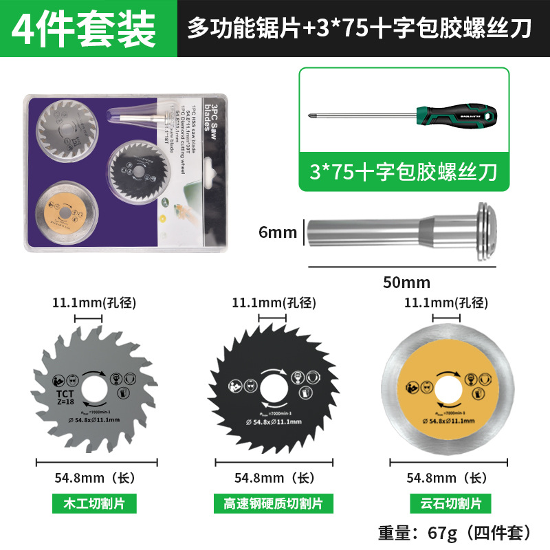 • [4개 세트] 다기능 톱날 + 3*75 십자 고무 코팅 드라이버