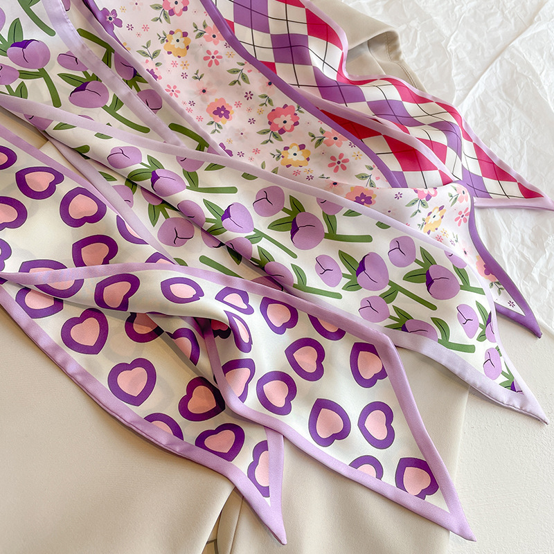 보라색 프랑스 스타일 우아한 작은 실크 스카프 새로운 도착 올 매치 패션 헤어 타이 가방 리본 우아한 장식 스카프 액세서리
